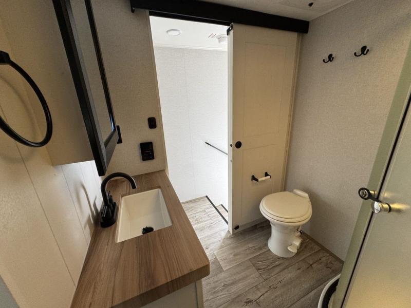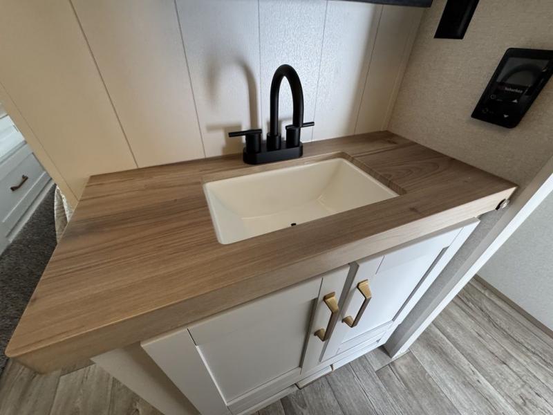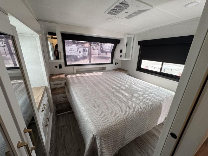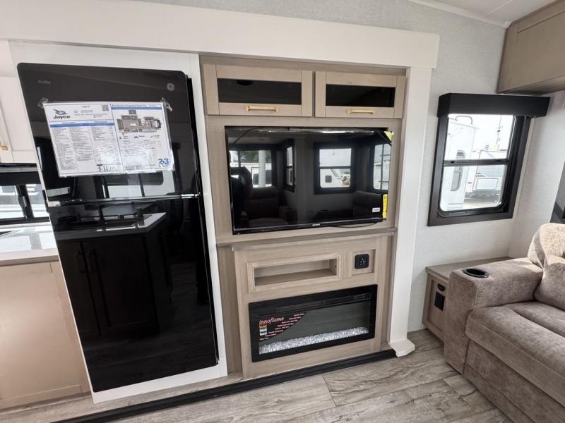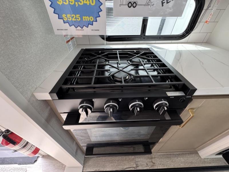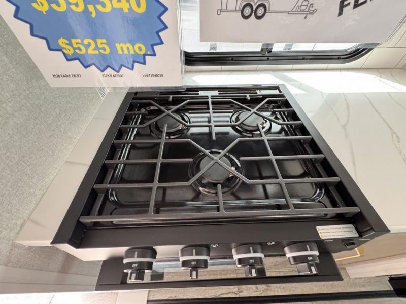 With any Eagle HT fifth wheel or travel trailer by Jayco you will enjoy a smooth drive thanks to the 4 Star Handling Package and MORryde CRE-3000 rubberized suspension. The Customer Value Package includes amenities that are sure to make camping easier than ever, like the 60K on-demand water heater, Keyed-Alike lock system, 15,000 BTU "Whisper Quiet" A/C, and more. Handcrafted door/drawer fronts will make your space feel more like home, along with residential vinyl flooring throughout, GE appliances, and blackout roller shades with reflective side throughout to keep the sun out when you want to sleep in. Each model also includes a NuVo H2O water treatment system with filters included, interior and exterior "Blue Sync" audio connect with MB Quart Sound for your TV and phone, and 100% no floor vents for added comfort and convenience!