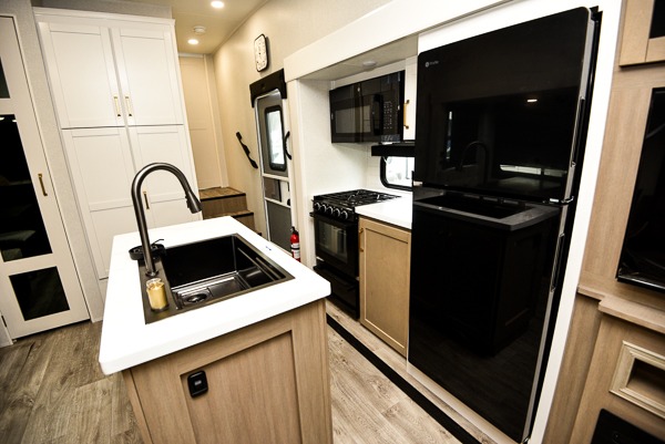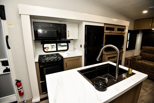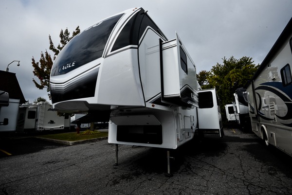 With any Eagle HT fifth wheel or travel trailer by Jayco you will enjoy a smooth drive thanks to the 4 Star Handling Package and MORryde CRE-3000 rubberized suspension. The Customer Value Package includes amenities that are sure to make camping easier than ever, like the 60K on-demand water heater, Keyed-Alike lock system, 15,000 BTU "Whisper Quiet" A/C, and more. Handcrafted door/drawer fronts will make your space feel more like home, along with residential vinyl flooring throughout, GE appliances, and blackout roller shades with reflective side throughout to keep the sun out when you want to sleep in. Each model also includes a NuVo H2O water treatment system with filters included, interior and exterior "Blue Sync" audio connect with MB Quart Sound for your TV and phone, and 100% no floor vents for added comfort and convenience!