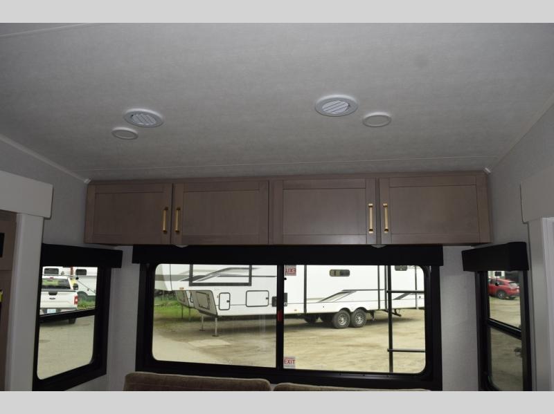 With any Eagle HT fifth wheel or travel trailer by Jayco you will enjoy a smooth drive thanks to the 4 Star Handling Package and MORryde CRE-3000 rubberized suspension. The Customer Value Package includes amenities that are sure to make camping easier than ever, like the 60K on-demand water heater, Keyed-Alike lock system, 15,000 BTU "Whisper Quiet" A/C, and more. Handcrafted door/drawer fronts will make your space feel more like home, along with residential vinyl flooring throughout, GE appliances, and blackout roller shades with reflective side throughout to keep the sun out when you want to sleep in. Each model also includes a NuVo H2O water treatment system with filters included, interior and exterior "Blue Sync" audio connect with MB Quart Sound for your TV and phone, and 100% no floor vents for added comfort and convenience!