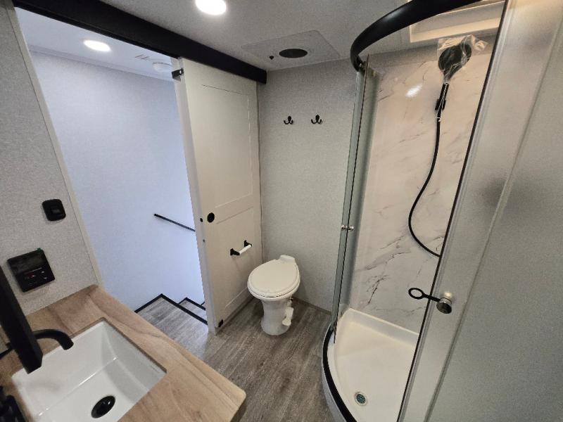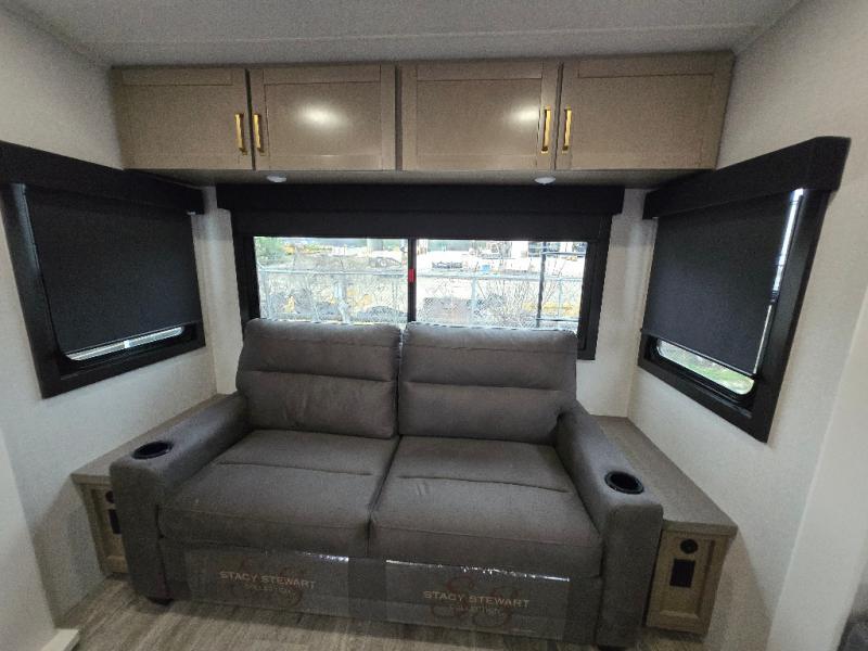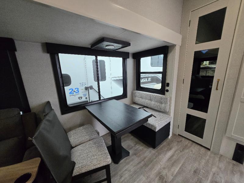 With any Eagle HT fifth wheel or travel trailer by Jayco you will enjoy a smooth drive thanks to the 4 Star Handling Package and MORryde CRE-3000 rubberized suspension. The Customer Value Package includes amenities that are sure to make camping easier than ever, like the 60K on-demand water heater, Keyed-Alike lock system, 15,000 BTU "Whisper Quiet" A/C, and more. Handcrafted door/drawer fronts will make your space feel more like home, along with residential vinyl flooring throughout, GE appliances, and blackout roller shades with reflective side throughout to keep the sun out when you want to sleep in. Each model also includes a NuVo H2O water treatment system with filters included, interior and exterior "Blue Sync" audio connect with MB Quart Sound for your TV and phone, and 100% no floor vents for added comfort and convenience!