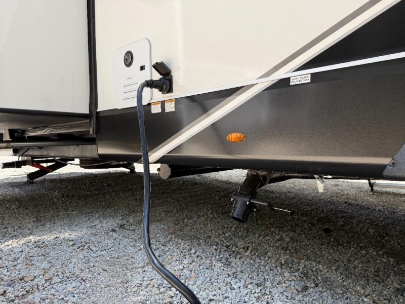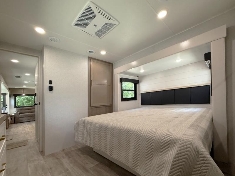 With any Eagle HT fifth wheel or travel trailer by Jayco you will enjoy a smooth drive thanks to the 4 Star Handling Package and MORryde CRE-3000 rubberized suspension. The Customer Value Package includes amenities that are sure to make camping easier than ever, like the 60K on-demand water heater, Keyed-Alike lock system, 15,000 BTU "Whisper Quiet" A/C, and more. Handcrafted door/drawer fronts will make your space feel more like home, along with residential vinyl flooring throughout, GE appliances, and blackout roller shades with reflective side throughout to keep the sun out when you want to sleep in. Each model also includes a NuVo H2O water treatment system with filters included, interior and exterior "Blue Sync" audio connect with MB Quart Sound for your TV and phone, and 100% no floor vents for added comfort and convenience!