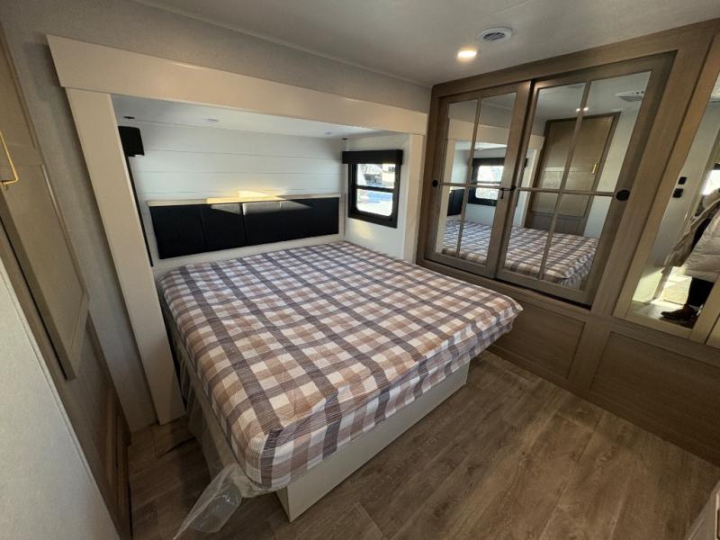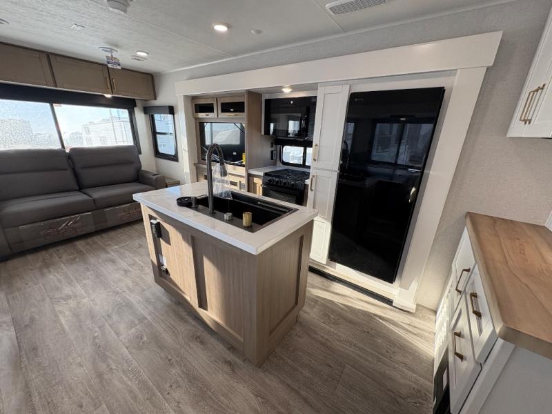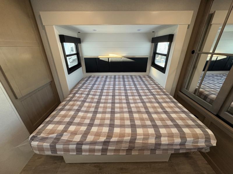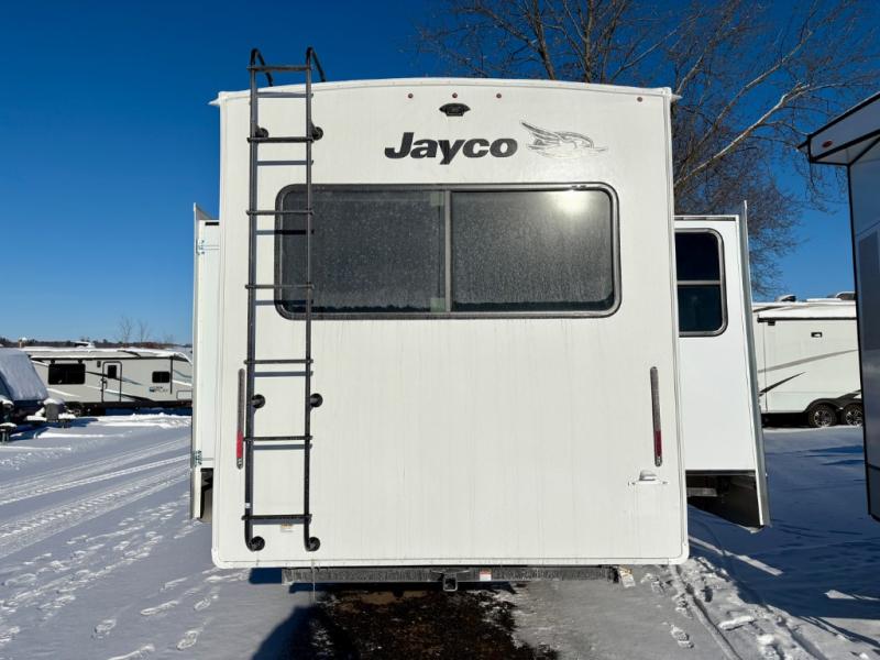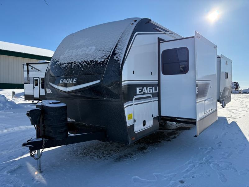 With any Eagle HT fifth wheel or travel trailer by Jayco you will enjoy a smooth drive thanks to the 4 Star Handling Package and MORryde CRE-3000 rubberized suspension. The Customer Value Package includes amenities that are sure to make camping easier than ever, like the 60K on-demand water heater, Keyed-Alike lock system, 15,000 BTU "Whisper Quiet" A/C, and more. Handcrafted door/drawer fronts will make your space feel more like home, along with residential vinyl flooring throughout, GE appliances, and blackout roller shades with reflective side throughout to keep the sun out when you want to sleep in. Each model also includes a NuVo H2O water treatment system with filters included, interior and exterior "Blue Sync" audio connect with MB Quart Sound for your TV and phone, and 100% no floor vents for added comfort and convenience!