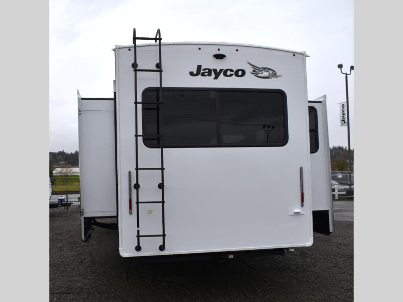With any Eagle HT fifth wheel or travel trailer by Jayco you will enjoy a smooth drive thanks to the 4 Star Handling Package and MORryde CRE-3000 rubberized suspension. The Customer Value Package includes amenities that are sure to make camping easier than ever, like the 60K on-demand water heater, Keyed-Alike lock system, 15,000 BTU "Whisper Quiet" A/C, and more. Handcrafted door/drawer fronts will make your space feel more like home, along with residential vinyl flooring throughout, GE appliances, and blackout roller shades with reflective side throughout to keep the sun out when you want to sleep in. Each model also includes a NuVo H2O water treatment system with filters included, interior and exterior "Blue Sync" audio connect with MB Quart Sound for your TV and phone, and 100% no floor vents for added comfort and convenience!