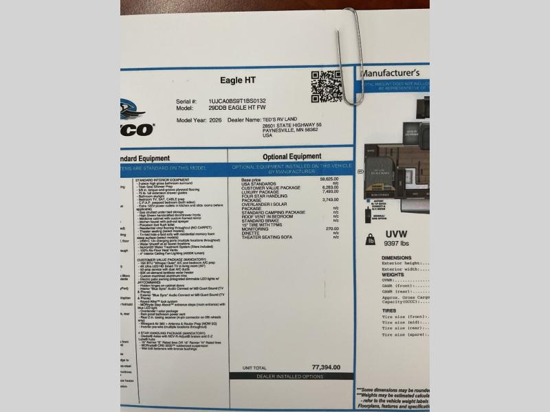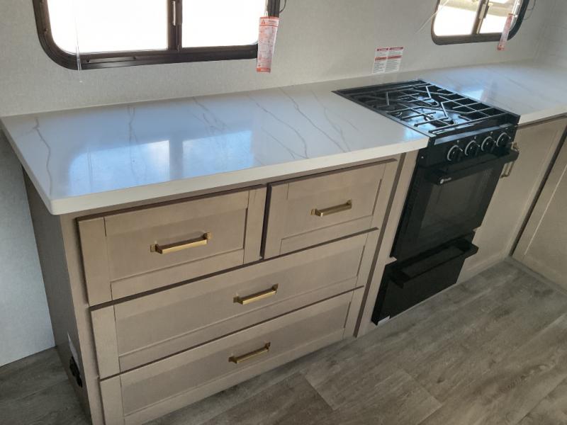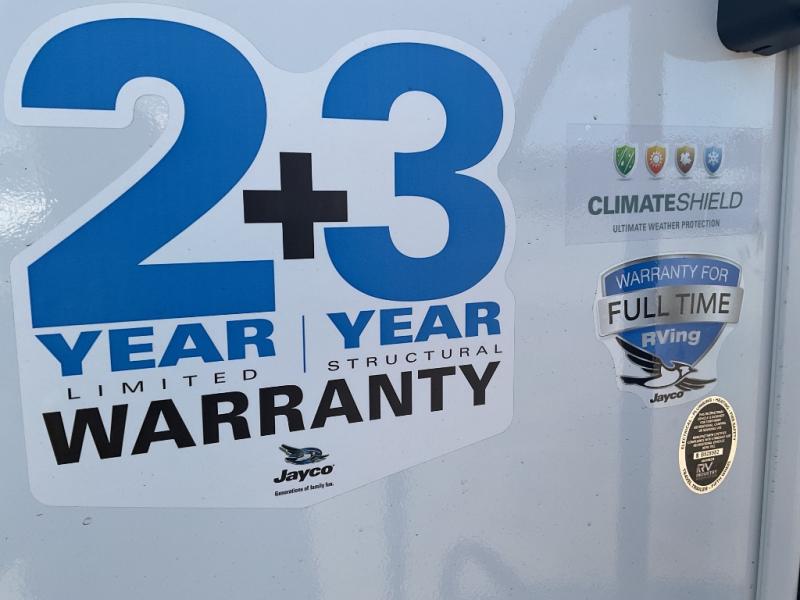 With any Eagle HT fifth wheel or travel trailer by Jayco you will enjoy a smooth drive thanks to the 4 Star Handling Package, Goodyear Endurance tires, and MORryde CRE-3000 rubberized suspension. The Customer Value Package includes amenities that are sure to make camping easier than ever, like the 60K on-demand water heater, Keyed-Alike lock system, 15,000 BTU "Whisper Quiet" A/C, and more. Handcrafted and glazed door/drawer fronts will make your space feel more like home, along with residential vinyl flooring throughout, GE appliances, and blackout roller shades with reflective side throughout to keep the sun out when you want to sleep in. Each model also includes a NuVo H2O water treatment system with filters included, interior and exterior "Blue Sync" audio connect with MB Quart Sound for your TV and phone, and 100% no floor vents for added comfort and convenience!