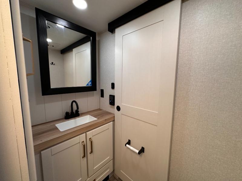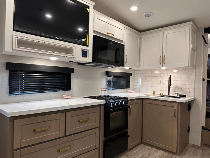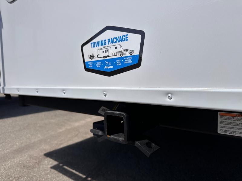 With any Eagle HT fifth wheel or travel trailer by Jayco you will enjoy a smooth drive thanks to the 4 Star Handling Package, Goodyear Endurance tires, and MORryde CRE-3000 rubberized suspension. The Customer Value Package includes amenities that are sure to make camping easier than ever, like the 60K on-demand water heater, Keyed-Alike lock system, 15,000 BTU "Whisper Quiet" A/C, and more. Handcrafted and glazed door/drawer fronts will make your space feel more like home, along with residential vinyl flooring throughout, GE appliances, and blackout roller shades with reflective side throughout to keep the sun out when you want to sleep in. Each model also includes a NuVo H2O water treatment system with filters included, interior and exterior "Blue Sync" audio connect with MB Quart Sound for your TV and phone, and 100% no floor vents for added comfort and convenience!