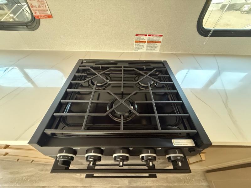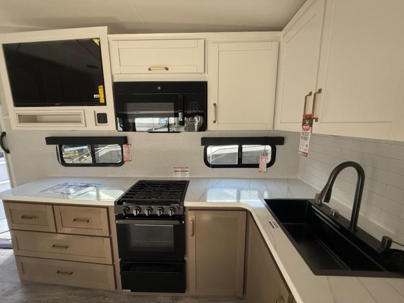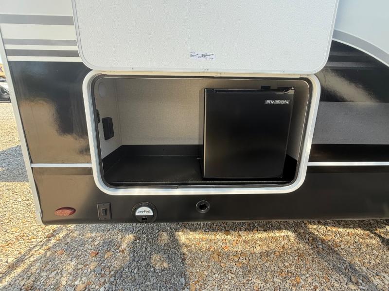 With any Eagle HT fifth wheel or travel trailer by Jayco you will enjoy a smooth drive thanks to the 4 Star Handling Package, Goodyear Endurance tires, and MORryde CRE-3000 rubberized suspension. The Customer Value Package includes amenities that are sure to make camping easier than ever, like the 60K on-demand water heater, Keyed-Alike lock system, 15,000 BTU "Whisper Quiet" A/C, and more. Handcrafted and glazed door/drawer fronts will make your space feel more like home, along with residential vinyl flooring throughout, GE appliances, and blackout roller shades with reflective side throughout to keep the sun out when you want to sleep in. Each model also includes a NuVo H2O water treatment system with filters included, interior and exterior "Blue Sync" audio connect with MB Quart Sound for your TV and phone, and 100% no floor vents for added comfort and convenience!