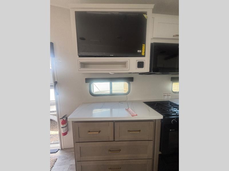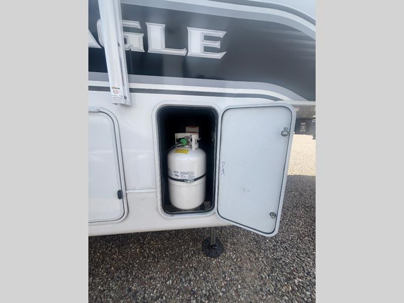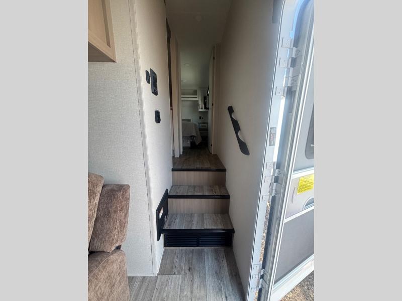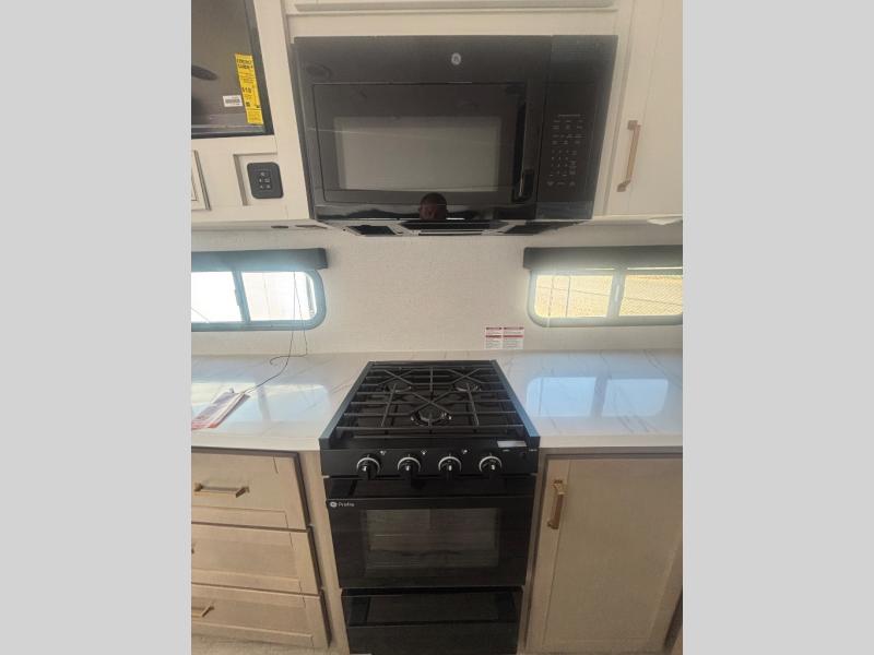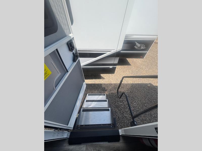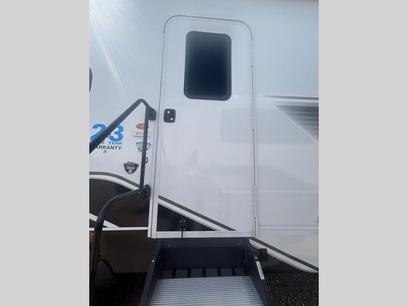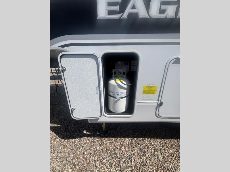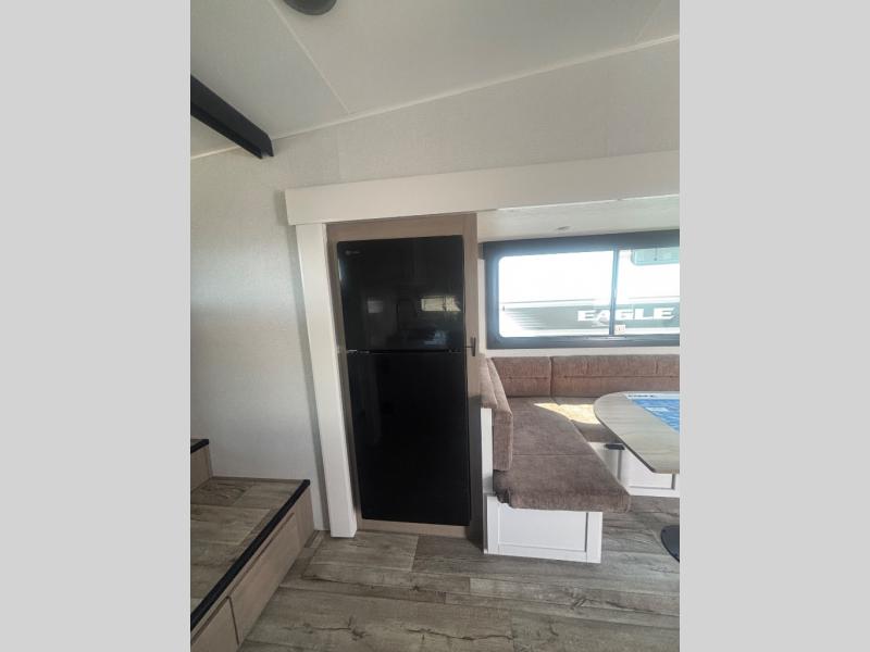 With any Eagle HT fifth wheel or travel trailer by Jayco you will enjoy a smooth drive thanks to the 4 Star Handling Package, Goodyear Endurance tires, and MORryde CRE-3000 rubberized suspension. The Customer Value Package includes amenities that are sure to make camping easier than ever, like the 60K on-demand water heater, Keyed-Alike lock system, 15,000 BTU "Whisper Quiet" A/C, and more. Handcrafted and glazed door/drawer fronts will make your space feel more like home, along with residential vinyl flooring throughout, GE appliances, and blackout roller shades with reflective side throughout to keep the sun out when you want to sleep in. Each model also includes a NuVo H2O water treatment system with filters included, interior and exterior "Blue Sync" audio connect with MB Quart Sound for your TV and phone, and 100% no floor vents for added comfort and convenience!