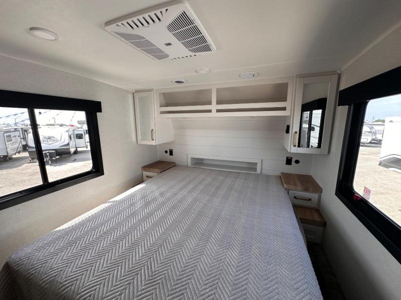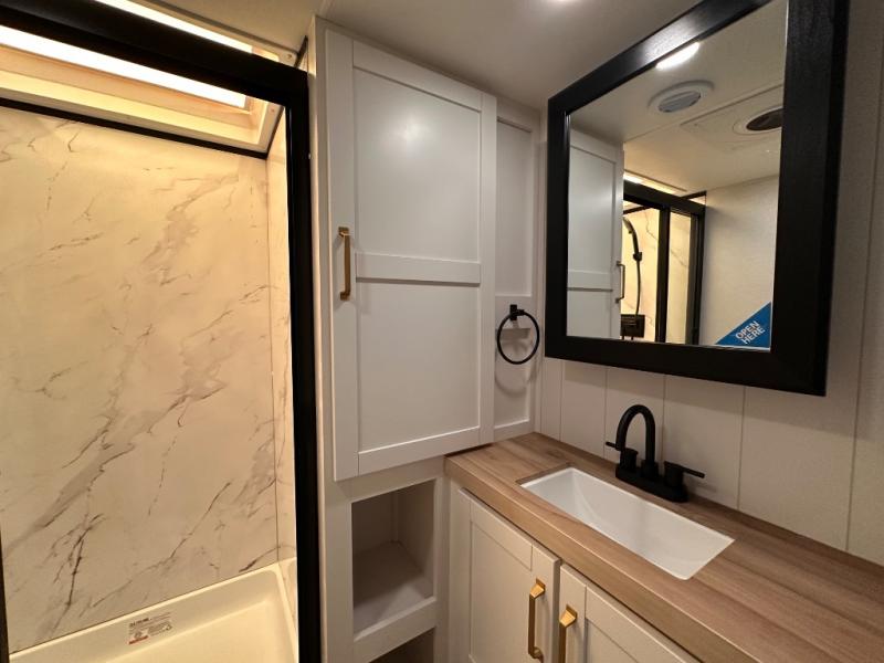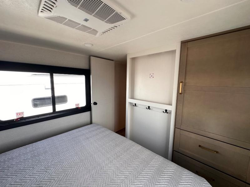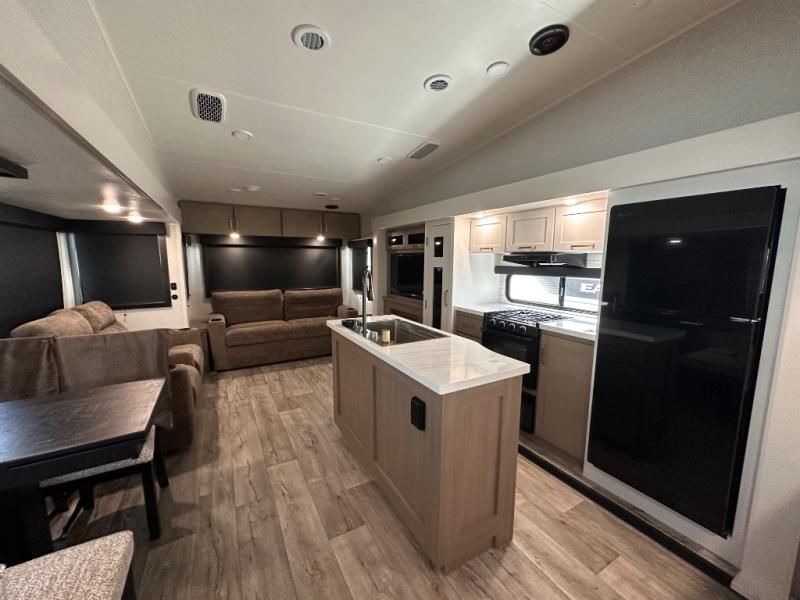 With any Eagle HT fifth wheel or travel trailer by Jayco you will enjoy a smooth drive thanks to the 4 Star Handling Package and MORryde CRE-3000 rubberized suspension. The Customer Value Package includes amenities that are sure to make camping easier than ever, like the 60K on-demand water heater, Keyed-Alike lock system, 15,000 BTU "Whisper Quiet" A/C, and more. Handcrafted door/drawer fronts will make your space feel more like home, along with residential vinyl flooring throughout, GE appliances, and blackout roller shades with reflective side throughout to keep the sun out when you want to sleep in. Each model also includes a NuVo H2O water treatment system with filters included, interior and exterior "Blue Sync" audio connect with MB Quart Sound for your TV and phone, and 100% no floor vents for added comfort and convenience!