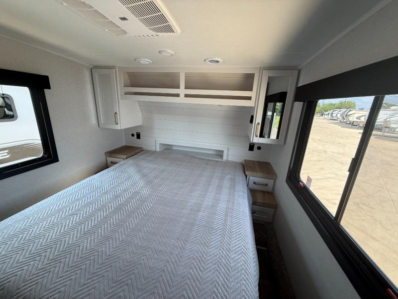 With any Eagle HT fifth wheel or travel trailer by Jayco you will enjoy a smooth drive thanks to the 4 Star Handling Package, Goodyear Endurance tires, and MORryde CRE-3000 rubberized suspension. The Customer Value Package includes amenities that are sure to make camping easier than ever, like the 60K on-demand water heater, Keyed-Alike lock system, 15,000 BTU "Whisper Quiet" A/C, and more. Handcrafted and glazed door/drawer fronts will make your space feel more like home, along with residential vinyl flooring throughout, GE appliances, and blackout roller shades with reflective side throughout to keep the sun out when you want to sleep in. Each model also includes a NuVo H2O water treatment system with filters included, interior and exterior "Blue Sync" audio connect with MB Quart Sound for your TV and phone, and 100% no floor vents for added comfort and convenience!