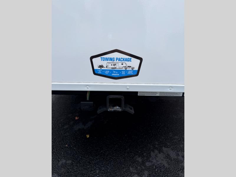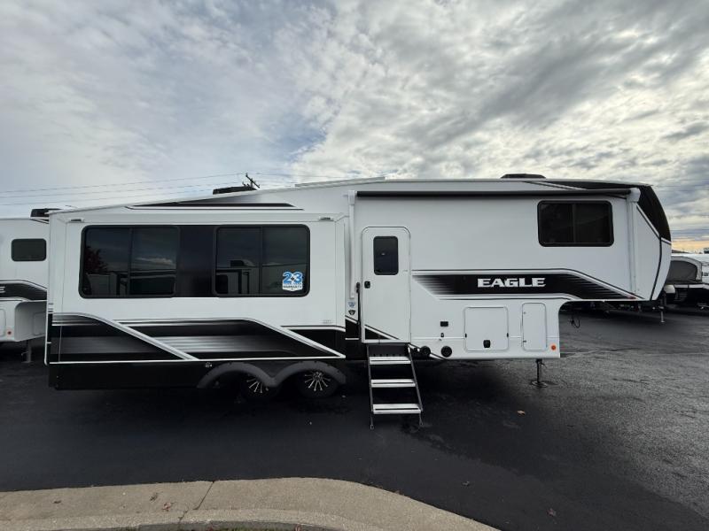 With any Eagle HT fifth wheel or travel trailer by Jayco you will enjoy a smooth drive thanks to the 4 Star Handling Package and MORryde CRE-3000 rubberized suspension. The Customer Value Package includes amenities that are sure to make camping easier than ever, like the 60K on-demand water heater, Keyed-Alike lock system, 15,000 BTU "Whisper Quiet" A/C, and more. Handcrafted door/drawer fronts will make your space feel more like home, along with residential vinyl flooring throughout, GE appliances, and blackout roller shades with reflective side throughout to keep the sun out when you want to sleep in. Each model also includes a NuVo H2O water treatment system with filters included, interior and exterior "Blue Sync" audio connect with MB Quart Sound for your TV and phone, and 100% no floor vents for added comfort and convenience!