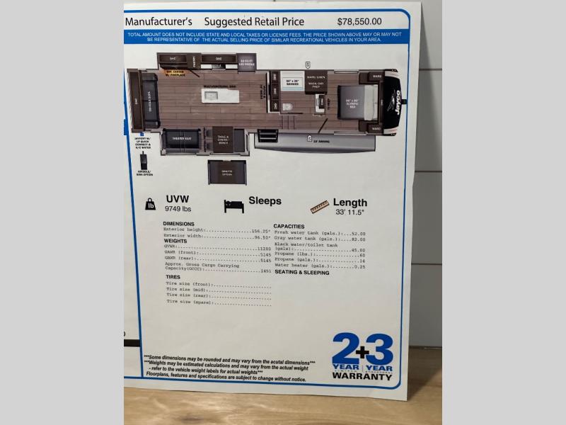 | Awning Info | 15' Electric w/Integrated LED Lights |