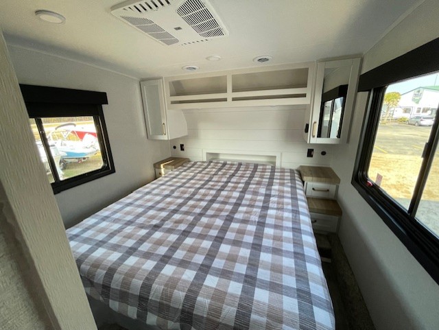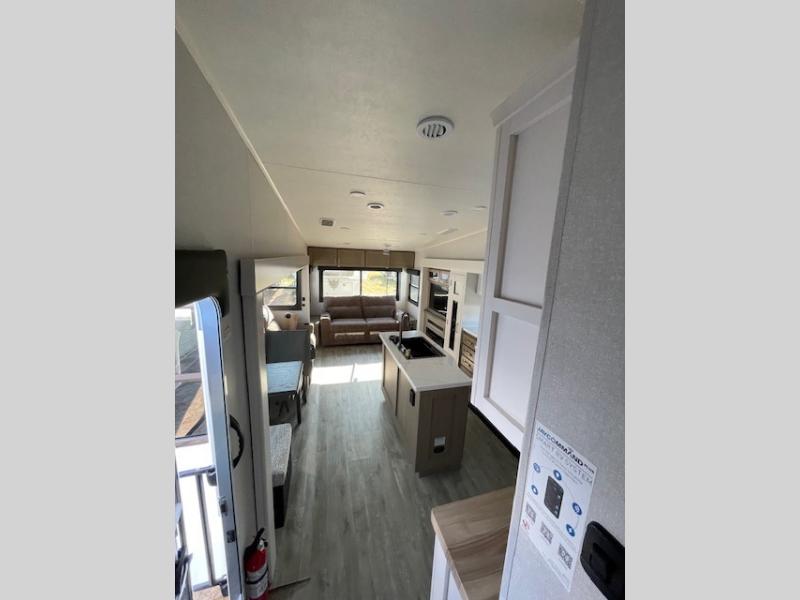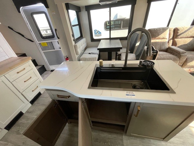With any Eagle HT fifth wheel or travel trailer by Jayco you will enjoy a smooth drive thanks to the 4 Star Handling Package and MORryde CRE-3000 rubberized suspension. The Customer Value Package includes amenities that are sure to make camping easier than ever, like the 60K on-demand water heater, Keyed-Alike lock system, 15,000 BTU "Whisper Quiet" A/C, and more. Handcrafted door/drawer fronts will make your space feel more like home, along with residential vinyl flooring throughout, GE appliances, and blackout roller shades with reflective side throughout to keep the sun out when you want to sleep in. Each model also includes a NuVo H2O water treatment system with filters included, interior and exterior "Blue Sync" audio connect with MB Quart Sound for your TV and phone, and 100% no floor vents for added comfort and convenience!
