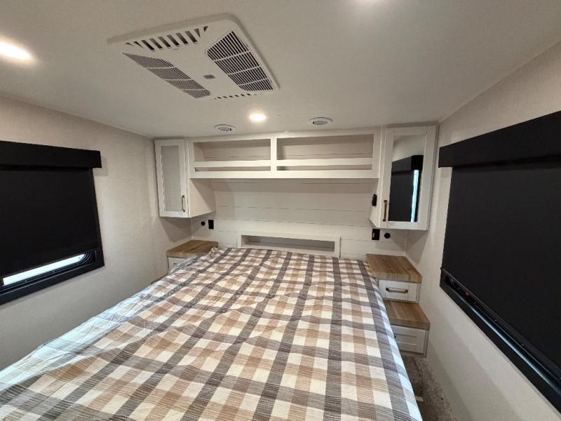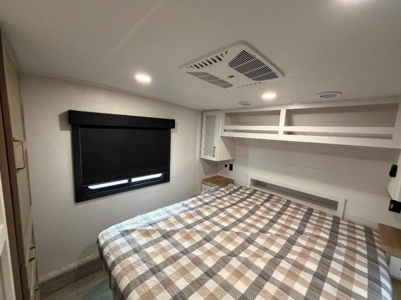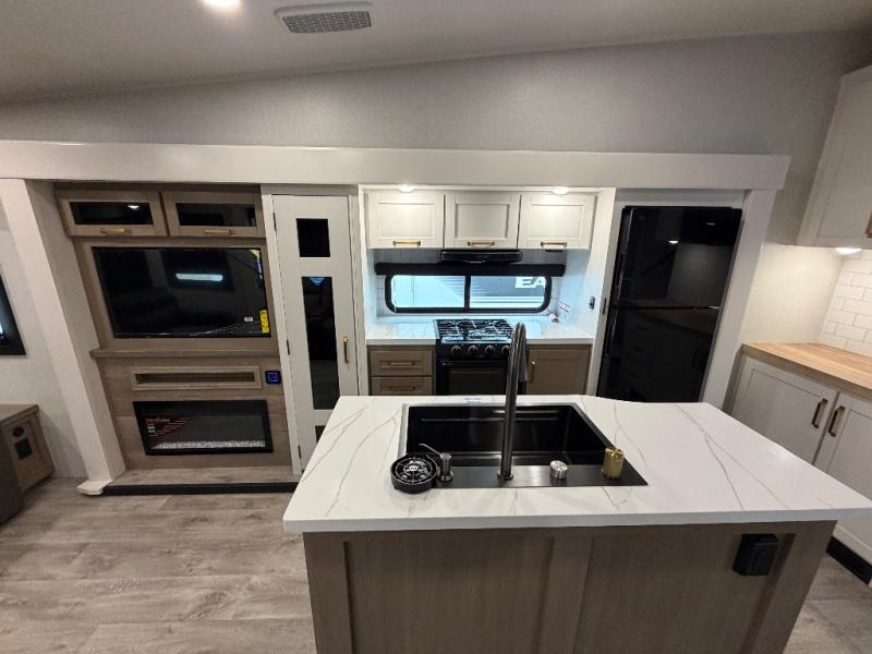 With any Eagle HT fifth wheel or travel trailer by Jayco you will enjoy a smooth drive thanks to the 4 Star Handling Package and MORryde CRE-3000 rubberized suspension. The Customer Value Package includes amenities that are sure to make camping easier than ever, like the 60K on-demand water heater, Keyed-Alike lock system, 15,000 BTU "Whisper Quiet" A/C, and more. Handcrafted door/drawer fronts will make your space feel more like home, along with residential vinyl flooring throughout, GE appliances, and blackout roller shades with reflective side throughout to keep the sun out when you want to sleep in. Each model also includes a NuVo H2O water treatment system with filters included, interior and exterior "Blue Sync" audio connect with MB Quart Sound for your TV and phone, and 100% no floor vents for added comfort and convenience!