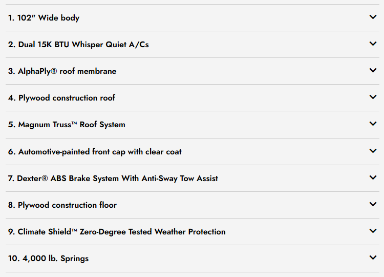 | Awning Info | 15' Electric w/Integrated LED Lights |