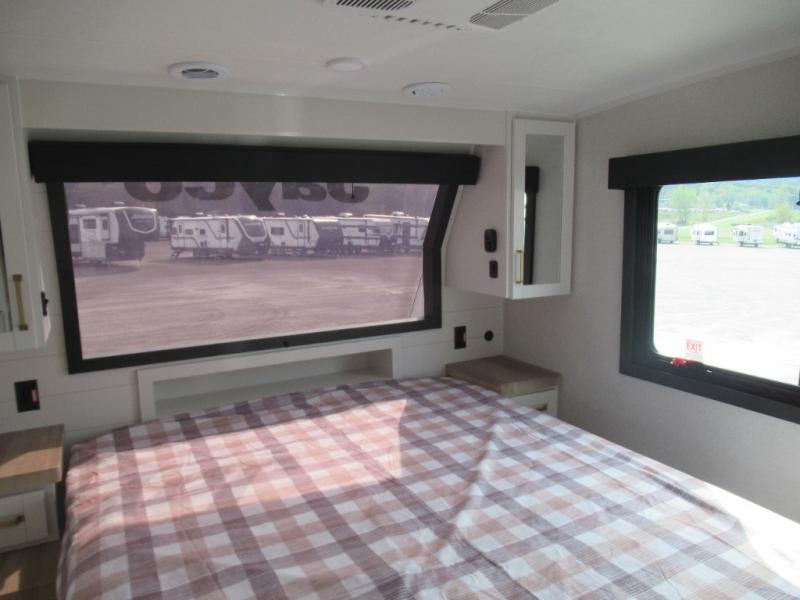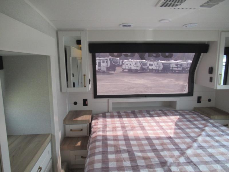 With any Eagle HT fifth wheel or travel trailer by Jayco you will enjoy a smooth drive thanks to the 4 Star Handling Package and MORryde CRE-3000 rubberized suspension. The Customer Value Package includes amenities that are sure to make camping easier than ever, like the 60K on-demand water heater, Keyed-Alike lock system, 15,000 BTU "Whisper Quiet" A/C, and more. Handcrafted door/drawer fronts will make your space feel more like home, along with residential vinyl flooring throughout, GE appliances, and blackout roller shades with reflective side throughout to keep the sun out when you want to sleep in. Each model also includes a NuVo H2O water treatment system with filters included, interior and exterior "Blue Sync" audio connect with MB Quart Sound for your TV and phone, and 100% no floor vents for added comfort and convenience!