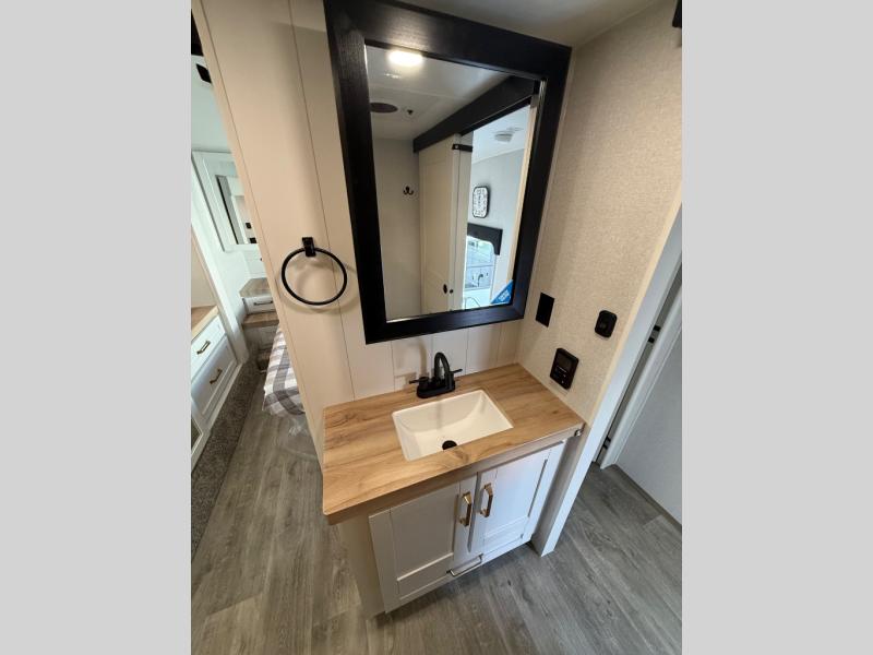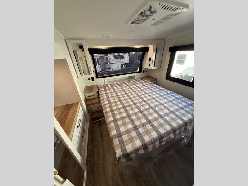 After a long day hiking forest trails or paddling quiet rivers, retreat to your private sanctuary. The Olympic-size mattress—6” wider and 8” thicker than standard RV beds—offers room to stretch, while Cooling Tech materials keep things comfortable throughout the night.