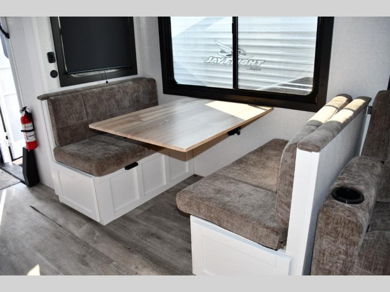 • Sleeps up to 9 – Thanks to the bunkhouse, tri-fold sofa, and booth dinette, there's space for the whole family plus friends