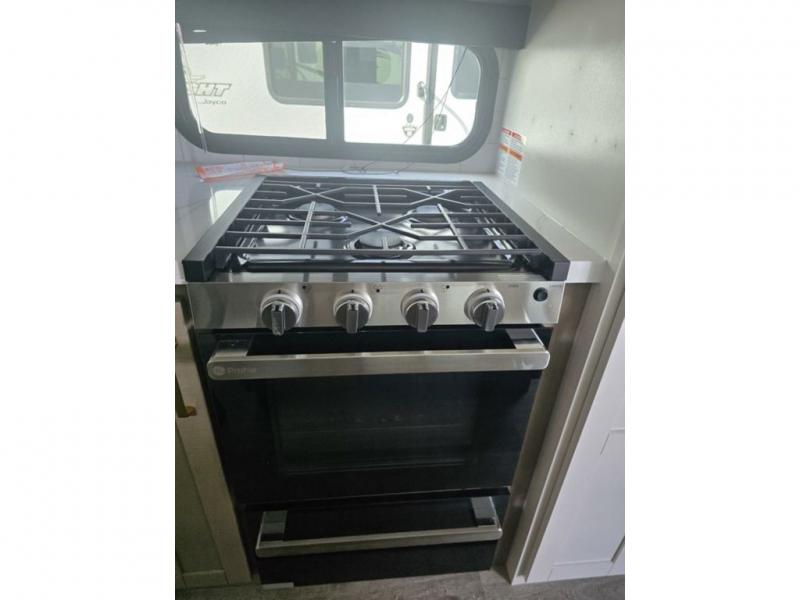 With any Eagle HT fifth wheel or travel trailer by Jayco you will enjoy a smooth drive thanks to the 4 Star Handling Package and MORryde CRE-3000 rubberized suspension. The Customer Value Package includes amenities that are sure to make camping easier than ever, like the 60K on-demand water heater, Keyed-Alike lock system, 15,000 BTU "Whisper Quiet" A/C, and more. Handcrafted door/drawer fronts will make your space feel more like home, along with residential vinyl flooring throughout, GE appliances, and blackout roller shades with reflective side throughout to keep the sun out when you want to sleep in. Each model also includes a NuVo H2O water treatment system with filters included, interior and exterior "Blue Sync" audio connect with MB Quart Sound for your TV and phone, and 100% no floor vents for added comfort and convenience!