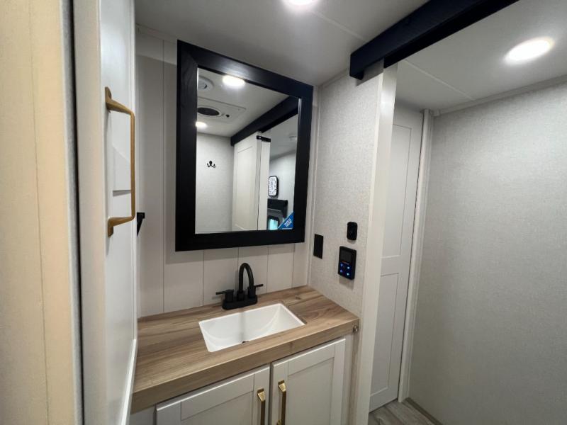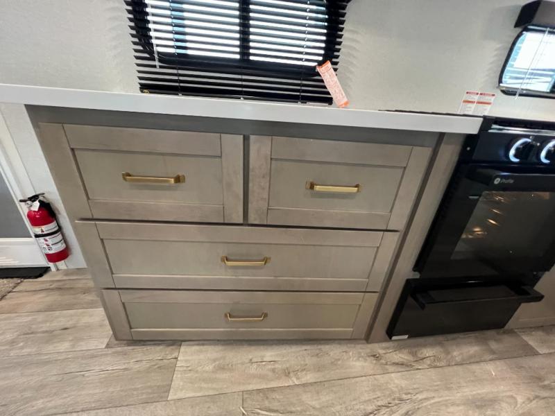 With any Eagle HT fifth wheel or travel trailer by Jayco you will enjoy a smooth drive thanks to the 4 Star Handling Package, Goodyear Endurance tires, and MORryde CRE-3000 rubberized suspension. The Customer Value Package includes amenities that are sure to make camping easier than ever, like the 60K on-demand water heater, Keyed-Alike lock system, 15,000 BTU "Whisper Quiet" A/C, and more. Handcrafted and glazed door/drawer fronts will make your space feel more like home, along with residential vinyl flooring throughout, GE appliances, and blackout roller shades with reflective side throughout to keep the sun out when you want to sleep in. Each model also includes a NuVo H2O water treatment system with filters included, interior and exterior "Blue Sync" audio connect with MB Quart Sound for your TV and phone, and 100% no floor vents for added comfort and convenience!