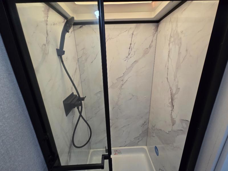 Spacious Full Bath – Residential-style shower and thoughtful storage.