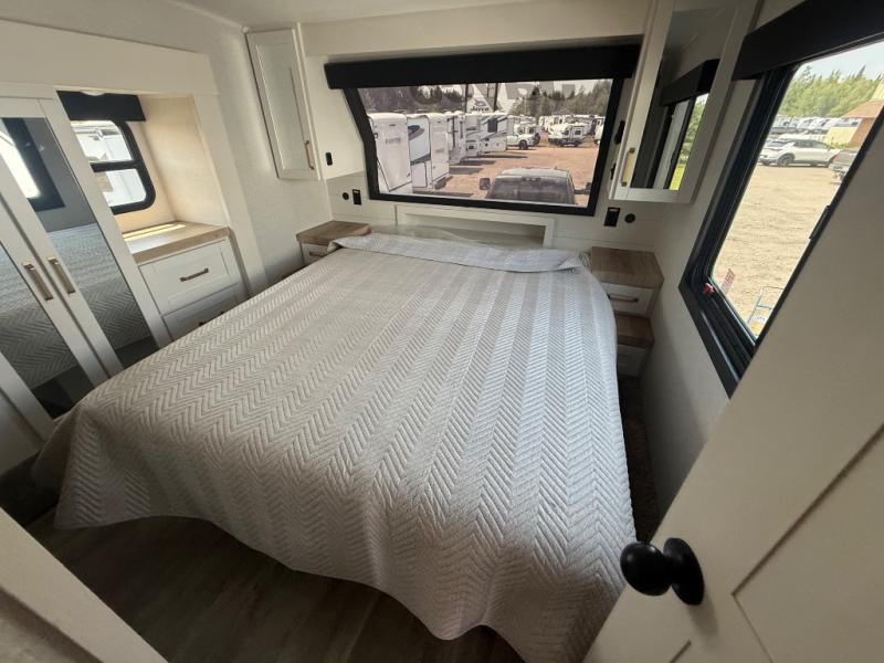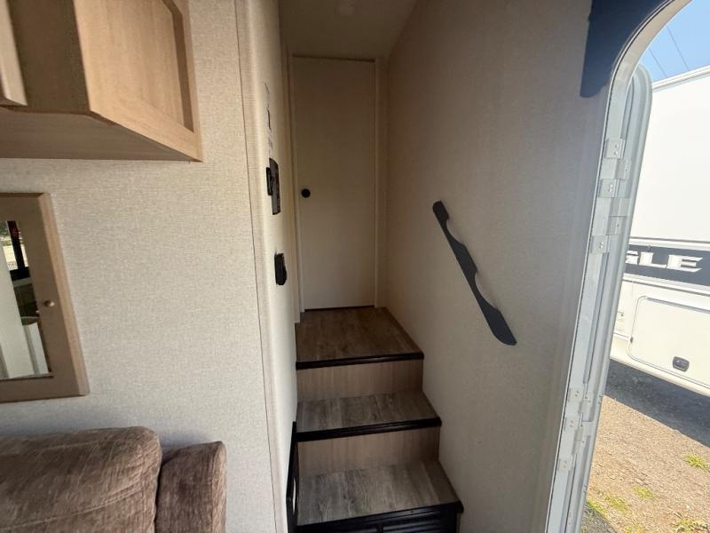 With any Eagle HT fifth wheel or travel trailer by Jayco you will enjoy a smooth drive thanks to the 4 Star Handling Package, Goodyear Endurance tires, and MORryde CRE-3000 rubberized suspension. The Customer Value Package includes amenities that are sure to make camping easier than ever, like the 60K on-demand water heater, Keyed-Alike lock system, 15,000 BTU "Whisper Quiet" A/C, and more. Handcrafted and glazed door/drawer fronts will make your space feel more like home, along with residential vinyl flooring throughout, GE appliances, and blackout roller shades with reflective side throughout to keep the sun out when you want to sleep in. Each model also includes a NuVo H2O water treatment system with filters included, interior and exterior "Blue Sync" audio connect with MB Quart Sound for your TV and phone, and 100% no floor vents for added comfort and convenience!