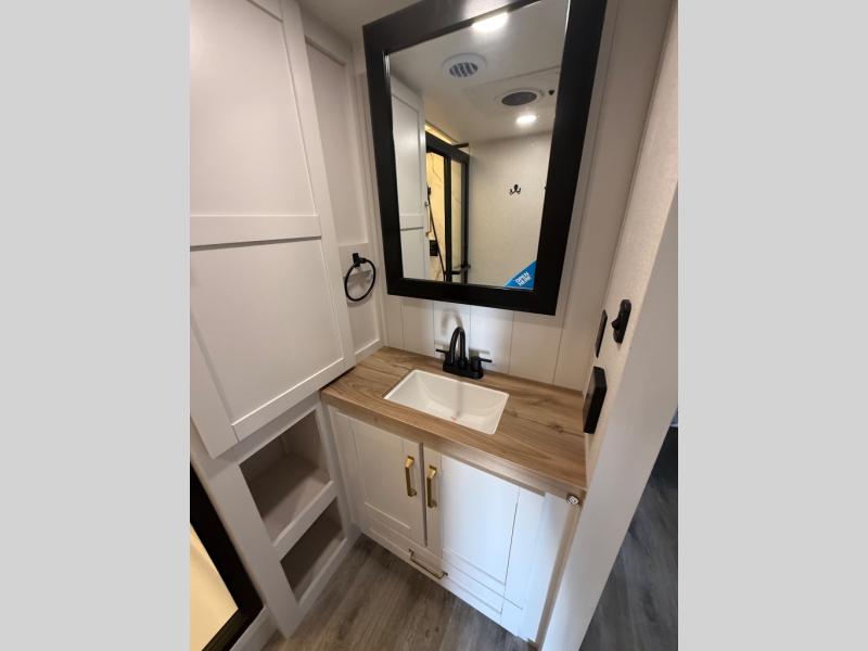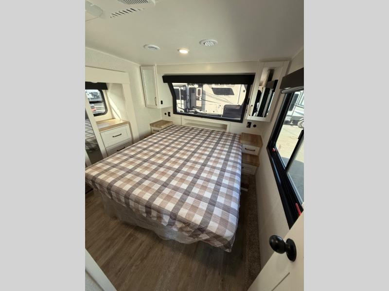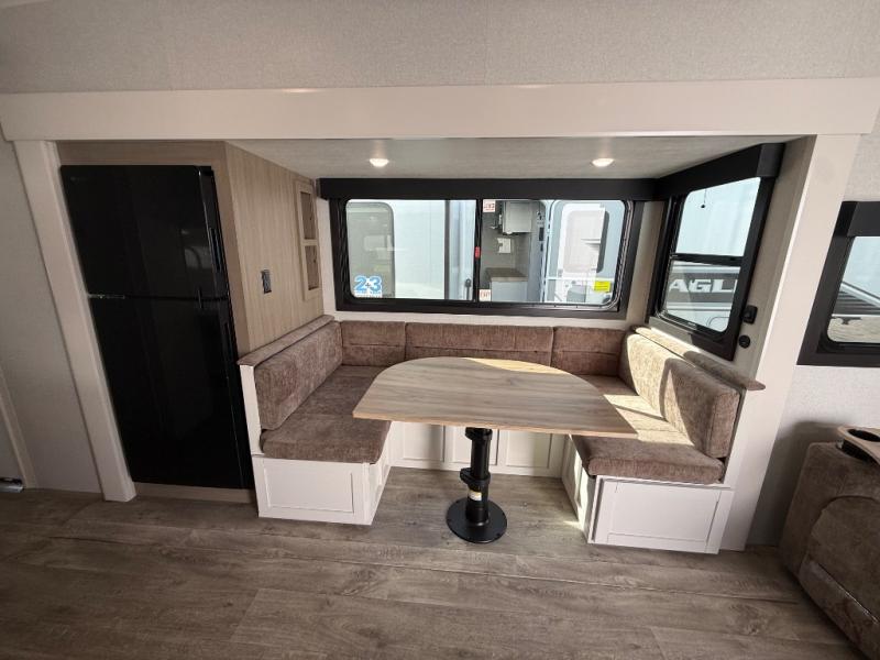 With any Eagle HT fifth wheel or travel trailer by Jayco you will enjoy a smooth drive thanks to the 4 Star Handling Package and MORryde CRE-3000 rubberized suspension. The Customer Value Package includes amenities that are sure to make camping easier than ever, like the 60K on-demand water heater, Keyed-Alike lock system, 15,000 BTU "Whisper Quiet" A/C, and more. Handcrafted door/drawer fronts will make your space feel more like home, along with residential vinyl flooring throughout, GE appliances, and blackout roller shades with reflective side throughout to keep the sun out when you want to sleep in. Each model also includes a NuVo H2O water treatment system with filters included, interior and exterior "Blue Sync" audio connect with MB Quart Sound for your TV and phone, and 100% no floor vents for added comfort and convenience!