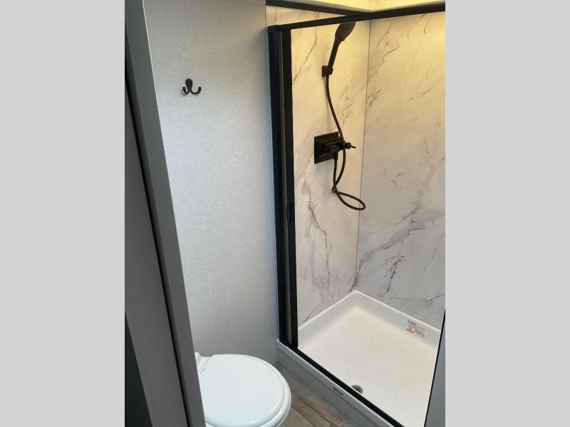With any Eagle SLE fifth wheel by Jayco, you will enjoy a lighter tow weight, high-end finishes, and the same quality construction you've come to expect from Jayco! There is an Alpha Ply TPO roof membrane, a fully enclosed and heated underbelly, plus Stronghold VBL walls for added durability. There is also a rear 2" towing receiver outside, along with metal slam latch baggage doors, MORryde Step Above entry steps, and a Winegard Air 360 antenna with router prep if you want to stay connected as you camp. Once inside you'll enjoy the handcrafted door/drawer fronts, shower skylight, and residential vinyl flooring throughout with no carpet for an easier clean. The on-demand water heater, 30K BTU furnace, and 15K BTU "Whisper Quiet" A/C will ensure your comfort, and the Overland 1 Solar Package will provide off-grid capabilities!