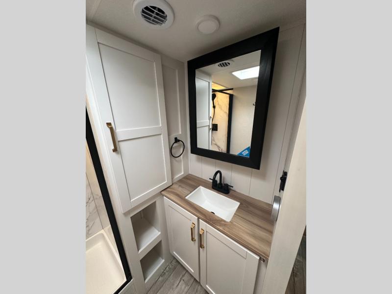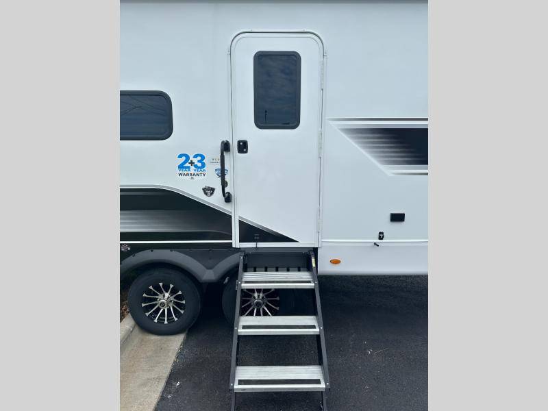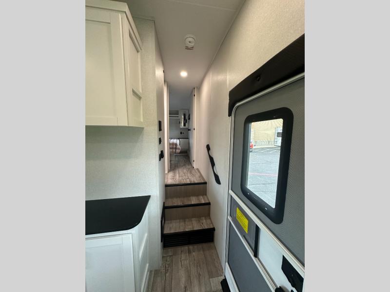 With any Eagle SLE fifth wheel by Jayco, you will enjoy a lighter tow weight, high-end finishes, and the same quality construction you've come to expect from Jayco! There is an Alpha Ply TPO roof membrane, a fully enclosed and heated underbelly, plus Stronghold VBL walls for added durability. There is also a rear 2" towing receiver outside, along with metal slam latch baggage doors, MORryde Step Above entry steps, and a Winegard Air 360 antenna with router prep if you want to stay connected as you camp. Once inside you'll enjoy the handcrafted and glazed door/drawer fronts, blackout pleated shades throughout, and residential vinyl flooring throughout with no carpet for an easier clean. The on-demand water heater, 30K BTU furnace, and 15K BTU "Whisper Quiet" A/C will ensure your comfort year around, and the optional Overland 1 Solar Package can be added if you need off-grid capabilities!