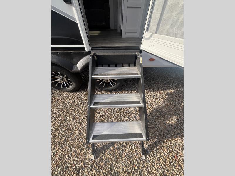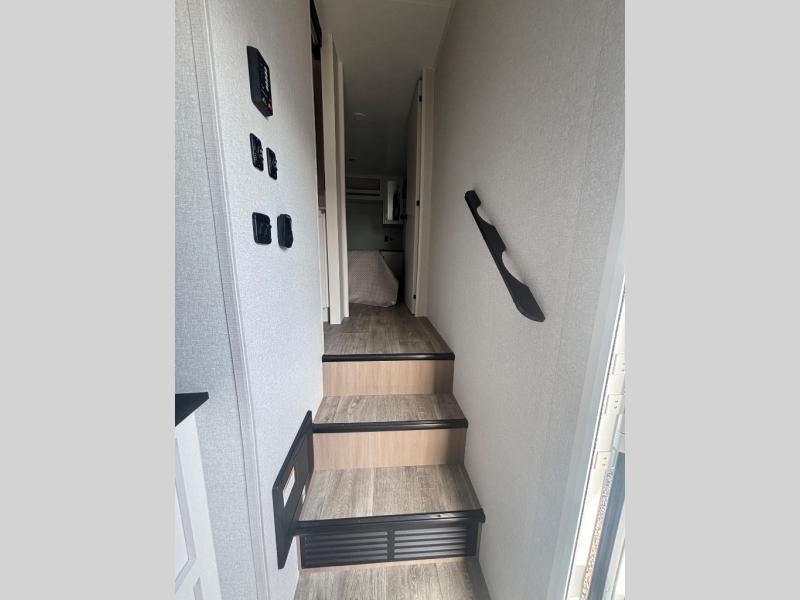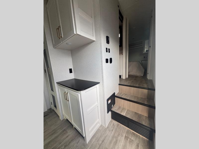 With any Eagle SLE fifth wheel by Jayco, you will enjoy a lighter tow weight, high-end finishes, and the same quality construction you've come to expect from Jayco! There is an Alpha Ply TPO roof membrane, a fully enclosed and heated underbelly, plus Stronghold VBL walls for added durability. There is also a rear 2" towing receiver outside, along with metal slam latch baggage doors, MORryde Step Above entry steps, and a Winegard Air 360 antenna with router prep if you want to stay connected as you camp. Once inside you'll enjoy the handcrafted and glazed door/drawer fronts, blackout pleated shades throughout, and residential vinyl flooring throughout with no carpet for an easier clean. The on-demand water heater, 30K BTU furnace, and 15K BTU "Whisper Quiet" A/C will ensure your comfort year around, and the optional Overland 1 Solar Package can be added if you need off-grid capabilities!