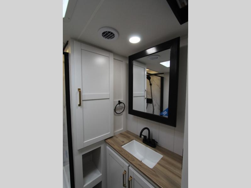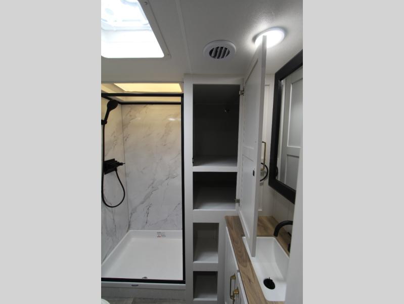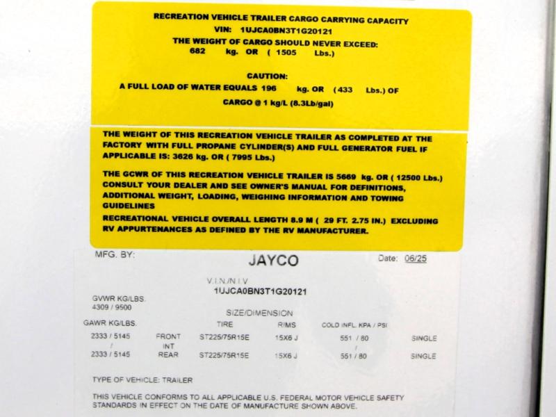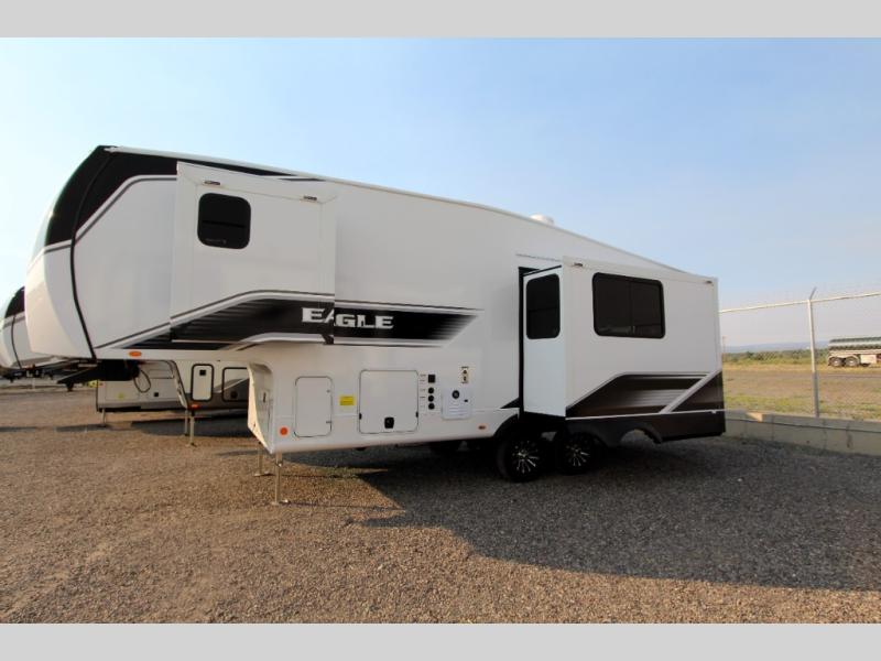 With any Eagle SLE fifth wheel by Jayco, you will enjoy a lighter tow weight, high-end finishes, and the same quality construction you've come to expect from Jayco! There is an Alpha Ply TPO roof membrane, a fully enclosed and heated underbelly, plus Stronghold VBL walls for added durability. There is also a rear 2" towing receiver outside, along with metal slam latch baggage doors, MORryde Step Above entry steps, and a Winegard Air 360 antenna with router prep if you want to stay connected as you camp. Once inside you'll enjoy the handcrafted and glazed door/drawer fronts, blackout pleated shades throughout, and residential vinyl flooring throughout with no carpet for an easier clean. The on-demand water heater, 30K BTU furnace, and 15K BTU "Whisper Quiet" A/C will ensure your comfort year around, and the optional Overland 1 Solar Package can be added if you need off-grid capabilities!