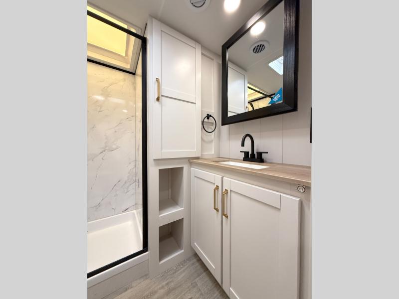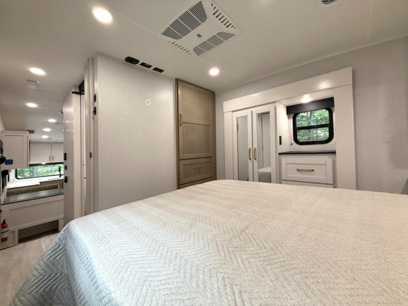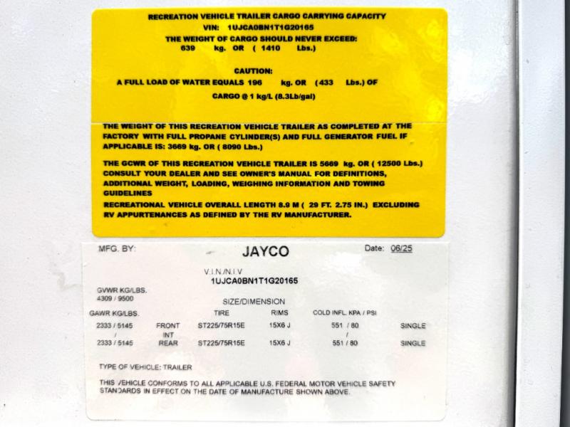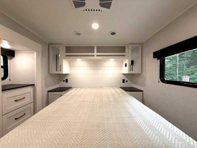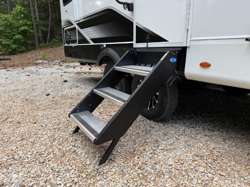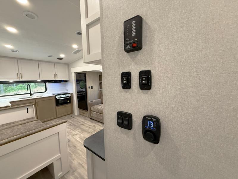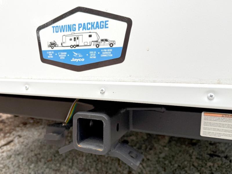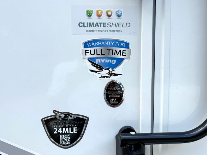 With any Eagle SLE fifth wheel by Jayco, you will enjoy a lighter tow weight, high-end finishes, and the same quality construction you've come to expect from Jayco! There is an Alpha Ply TPO roof membrane, a fully enclosed and heated underbelly, plus Stronghold VBL walls for added durability. There is also a rear 2" towing receiver outside, along with metal slam latch baggage doors, MORryde Step Above entry steps, and a Winegard Air 360 antenna with router prep if you want to stay connected as you camp. Once inside you'll enjoy the handcrafted and glazed door/drawer fronts, blackout pleated shades throughout, and residential vinyl flooring throughout with no carpet for an easier clean. The on-demand water heater, 30K BTU furnace, and 15K BTU "Whisper Quiet" A/C will ensure your comfort year around, and the optional Overland 1 Solar Package can be added if you need off-grid capabilities!