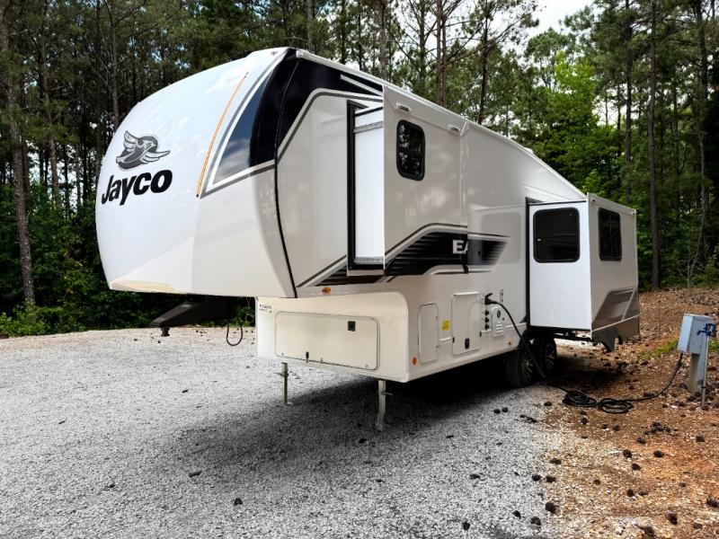Whether you’re an RV veteran or just getting started, the Jayco Eagle SLE fifth wheel is the perfect balance of rugged durability and refined luxury.