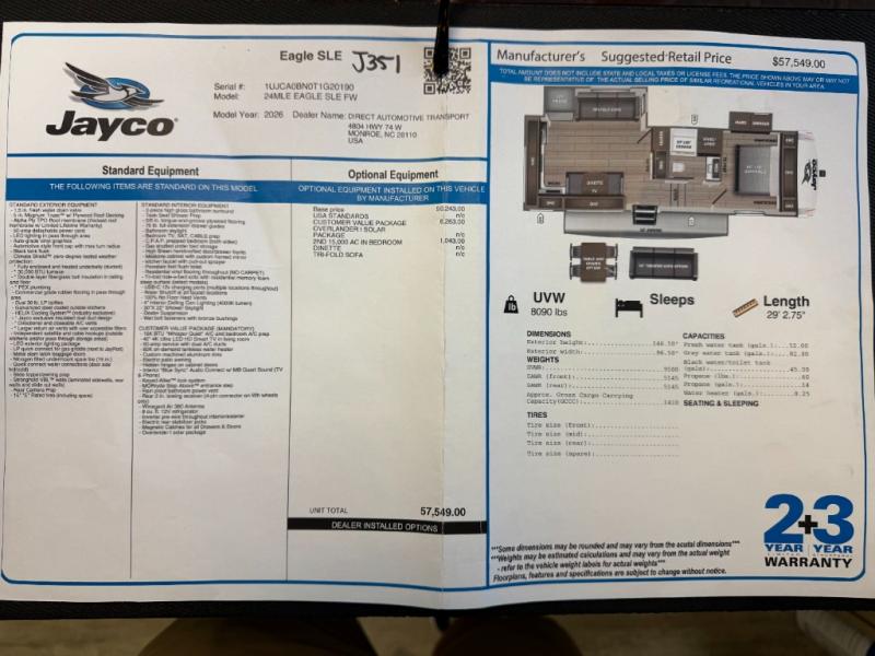 New 2026 Jayco Eagle SLE 24MLE Fifth Wheel