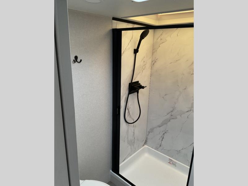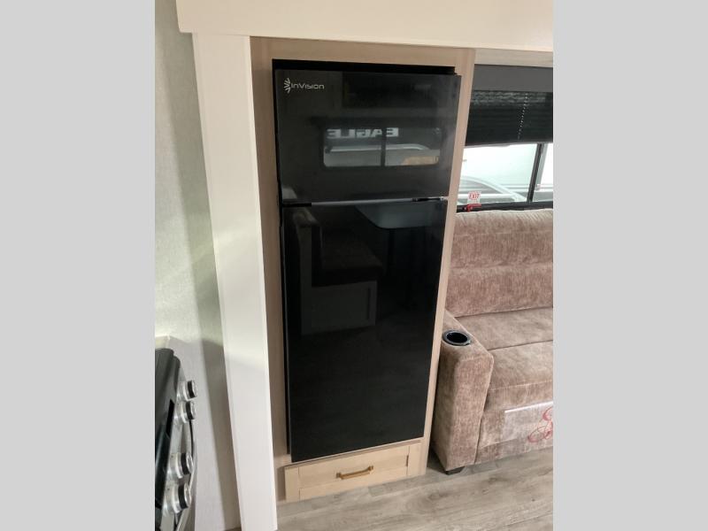 With any Eagle SLE fifth wheel by Jayco, you will enjoy a lighter tow weight, high-end finishes, and the same quality construction you've come to expect from Jayco! There is an Alpha Ply TPO roof membrane, a fully enclosed and heated underbelly, plus Stronghold VBL walls for added durability. There is also a rear 2" towing receiver outside, along with metal slam latch baggage doors, MORryde Step Above entry steps, and a Winegard Air 360 antenna with router prep if you want to stay connected as you camp. Once inside you'll enjoy the handcrafted and glazed door/drawer fronts, blackout pleated shades throughout, and residential vinyl flooring throughout with no carpet for an easier clean. The on-demand water heater, 30K BTU furnace, and 15K BTU "Whisper Quiet" A/C will ensure your comfort year around, and the optional Overland 1 Solar Package can be added if you need off-grid capabilities!