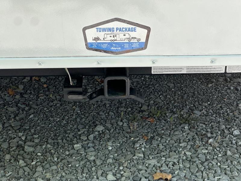 With any Eagle SLE fifth wheel by Jayco, you will enjoy a lighter tow weight, high-end finishes, and the same quality construction you've come to expect from Jayco! There is an Alpha Ply TPO roof membrane, a fully enclosed and heated underbelly, plus Stronghold VBL walls for added durability. There is also a rear 2" towing receiver outside, along with metal slam latch baggage doors, MORryde Step Above entry steps, and a Winegard Air 360 antenna with router prep if you want to stay connected as you camp. Once inside you'll enjoy the handcrafted and glazed door/drawer fronts, blackout pleated shades throughout, and residential vinyl flooring throughout with no carpet for an easier clean. The on-demand water heater, 30K BTU furnace, and 15K BTU "Whisper Quiet" A/C will ensure your comfort year around, and the optional Overland 1 Solar Package can be added if you need off-grid capabilities!