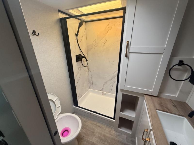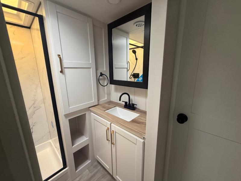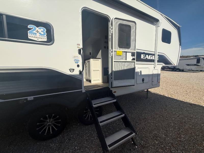 With any Eagle SLE fifth wheel by Jayco, you will enjoy a lighter tow weight, high-end finishes, and the same quality construction you've come to expect from Jayco! There is an Alpha Ply TPO roof membrane, a fully enclosed and heated underbelly, plus Stronghold VBL walls for added durability. There is also a rear 2" towing receiver outside, along with metal slam latch baggage doors, MORryde Step Above entry steps, and a Winegard Air 360 antenna with router prep if you want to stay connected as you camp. Once inside you'll enjoy the handcrafted and glazed door/drawer fronts, blackout pleated shades throughout, and residential vinyl flooring throughout with no carpet for an easier clean. The on-demand water heater, 30K BTU furnace, and 15K BTU "Whisper Quiet" A/C will ensure your comfort year around, and the optional Overland 1 Solar Package can be added if you need off-grid capabilities!