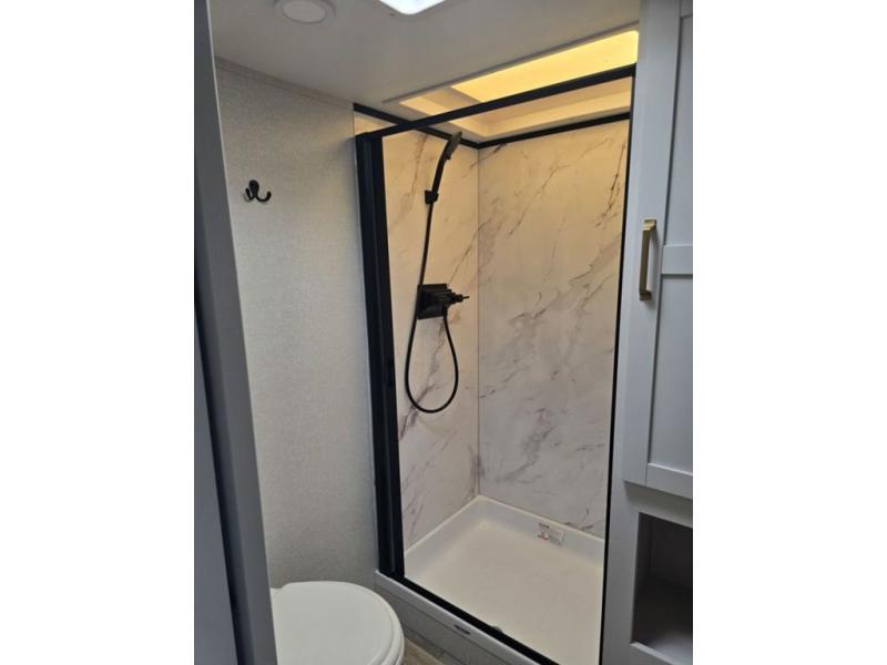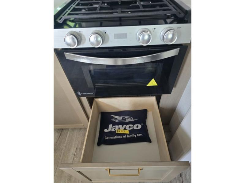 With any Eagle SLE fifth wheel by Jayco, you will enjoy a lighter tow weight, high-end finishes, and the same quality construction you've come to expect from Jayco! There is an Alpha Ply TPO roof membrane, a fully enclosed and heated underbelly, plus Stronghold VBL walls for added durability. There is also a rear 2" towing receiver outside, along with metal slam latch baggage doors, MORryde Step Above entry steps, and a Winegard Air 360 antenna with router prep if you want to stay connected as you camp. Once inside you'll enjoy the handcrafted and glazed door/drawer fronts, blackout pleated shades throughout, and residential vinyl flooring throughout with no carpet for an easier clean. The on-demand water heater, 30K BTU furnace, and 15K BTU "Whisper Quiet" A/C will ensure your comfort year around, and the optional Overland 1 Solar Package can be added if you need off-grid capabilities!