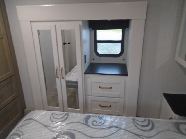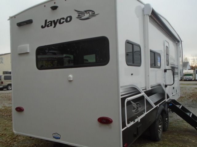 With any Eagle SLE fifth wheel by Jayco, you will enjoy a lighter tow weight, high-end finishes, and the same quality construction you've come to expect from Jayco! There is an Alpha Ply TPO roof membrane, a fully enclosed and heated underbelly, plus Stronghold VBL walls for added durability. There is also a rear 2" towing receiver outside, along with metal slam latch baggage doors, MORryde Step Above entry steps, and a Winegard Air 360 antenna with router prep if you want to stay connected as you camp. Once inside you'll enjoy the handcrafted and glazed door/drawer fronts, blackout pleated shades throughout, and residential vinyl flooring throughout with no carpet for an easier clean. The on-demand water heater, 30K BTU furnace, and 15K BTU "Whisper Quiet" A/C will ensure your comfort year around, and the optional Overland 1 Solar Package can be added if you need off-grid capabilities!