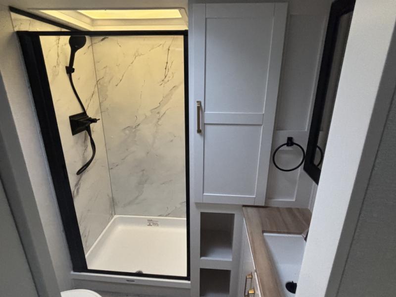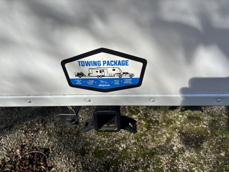 With any Eagle SLE fifth wheel by Jayco, you will enjoy a lighter tow weight, high-end finishes, and the same quality construction you've come to expect from Jayco! There is an Alpha Ply TPO roof membrane, a fully enclosed and heated underbelly, plus Stronghold VBL walls for added durability. There is also a rear 2" towing receiver outside, along with metal slam latch baggage doors, MORryde Step Above entry steps, and a Winegard Air 360 antenna with router prep if you want to stay connected as you camp. Once inside you'll enjoy the handcrafted and glazed door/drawer fronts, blackout pleated shades throughout, and residential vinyl flooring throughout with no carpet for an easier clean. The on-demand water heater, 30K BTU furnace, and 15K BTU "Whisper Quiet" A/C will ensure your comfort year around, and the optional Overland 1 Solar Package can be added if you need off-grid capabilities!