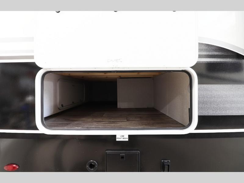 Smart storage: gas-strut under-bed, 75-lb extension drawers, pass-through bay, no-floor vents.