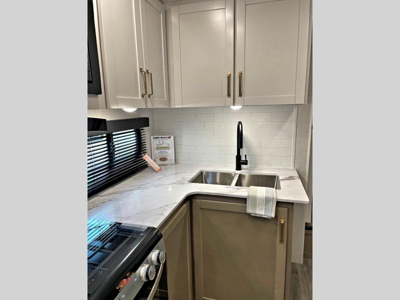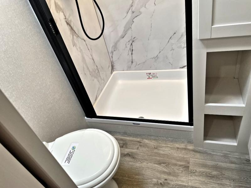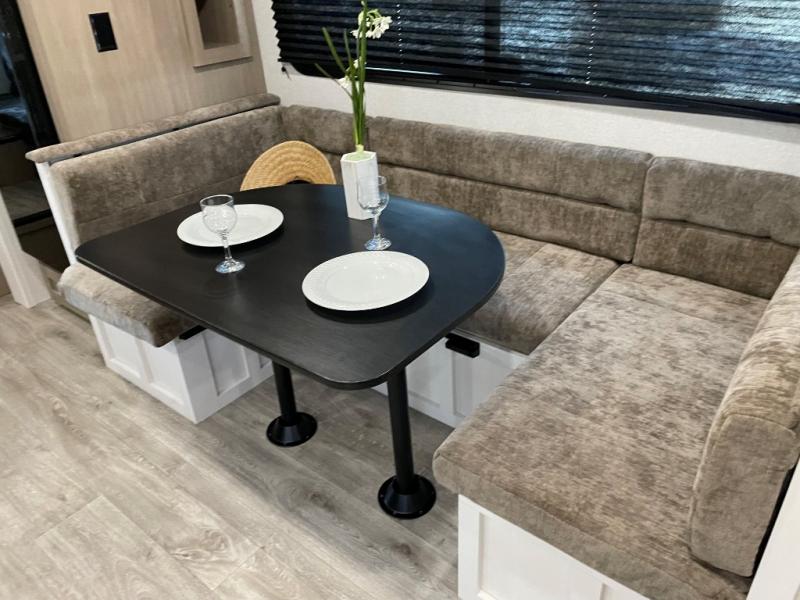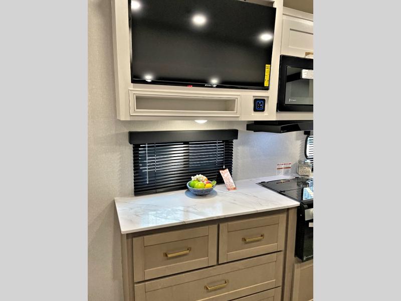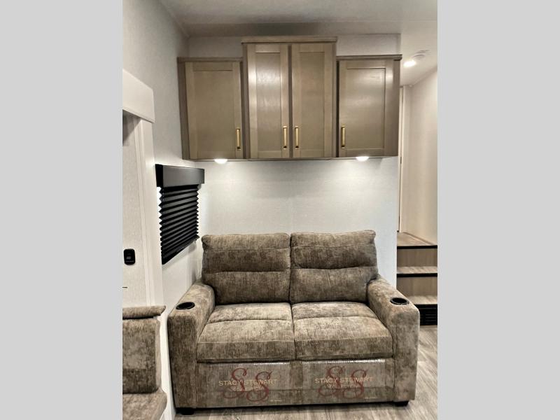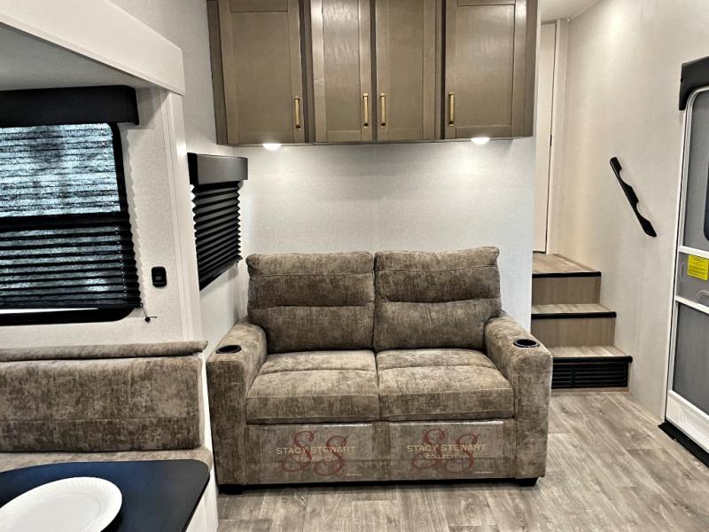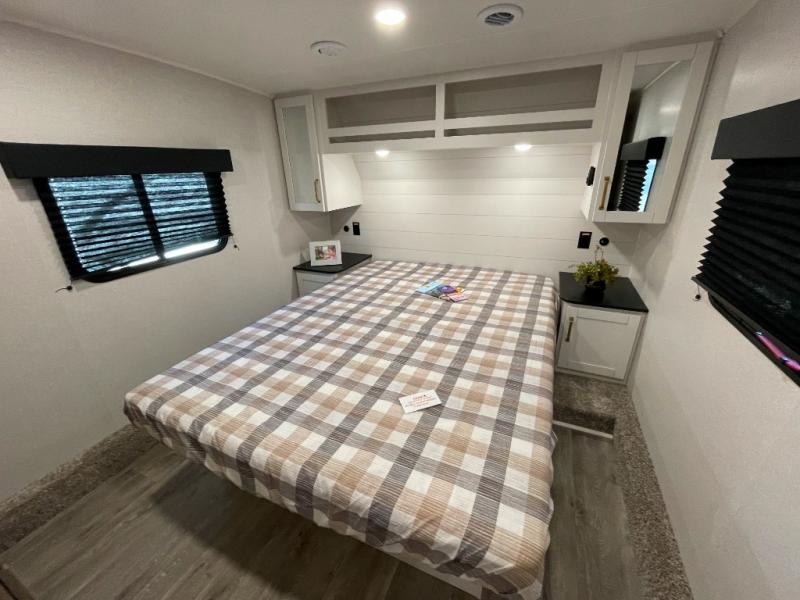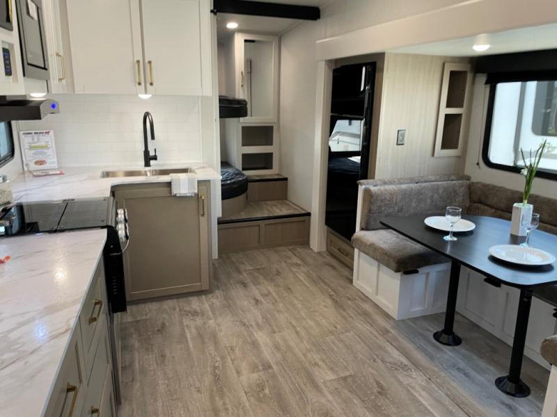With any Eagle SLE fifth wheel by Jayco, you will enjoy a lighter tow weight, high-end finishes, and the same quality construction you've come to expect from Jayco! There is an Alpha Ply TPO roof membrane, a fully enclosed and heated underbelly, plus Stronghold VBL walls for added durability. There is also a rear 2" towing receiver outside, along with metal slam latch baggage doors, MORryde Step Above entry steps, and a Winegard Air 360 antenna with router prep if you want to stay connected as you camp. Once inside you'll enjoy the handcrafted and glazed door/drawer fronts, blackout pleated shades throughout, and residential vinyl flooring throughout with no carpet for an easier clean. The on-demand water heater, 30K BTU furnace, and 15K BTU "Whisper Quiet" A/C will ensure your comfort year around, and the optional Overland 1 Solar Package can be added if you need off-grid capabilities!