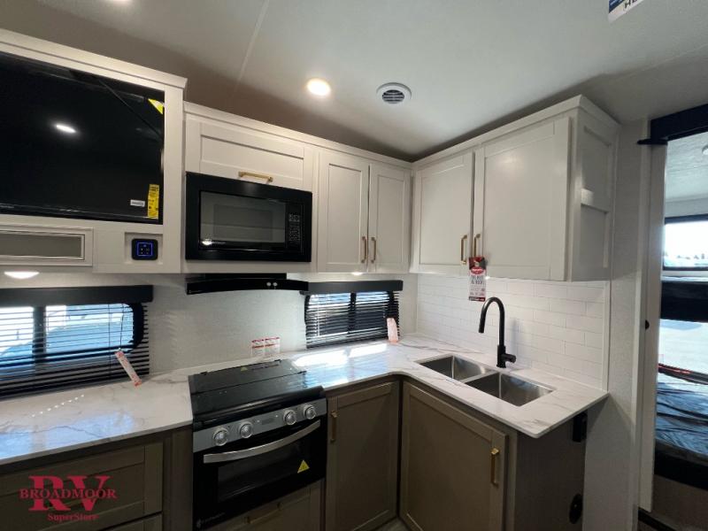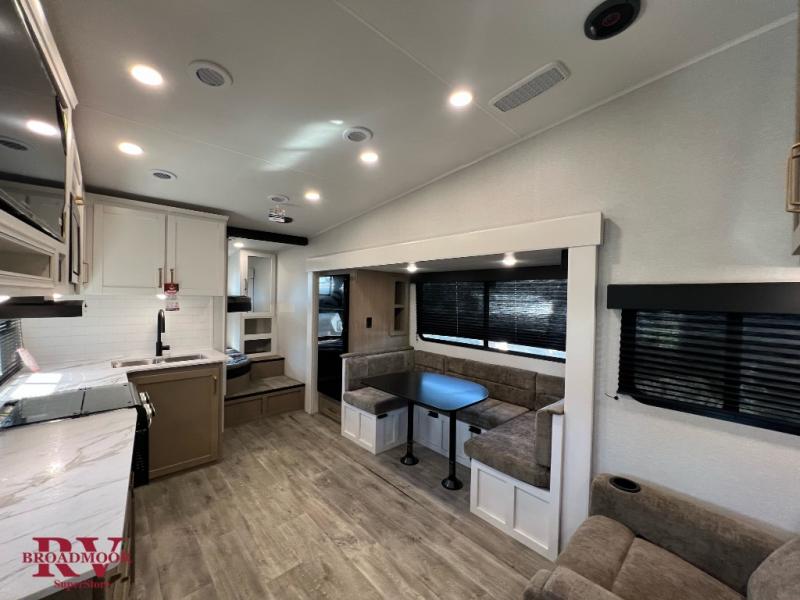 With any Eagle SLE fifth wheel by Jayco, you will enjoy a lighter tow weight, high-end finishes, and the same quality construction you've come to expect from Jayco! There is an Alpha Ply TPO roof membrane, a fully enclosed and heated underbelly, plus Stronghold VBL walls for added durability. There is also a rear 2" towing receiver outside, along with metal slam latch baggage doors, MORryde Step Above entry steps, and a Winegard Air 360 antenna with router prep if you want to stay connected as you camp. Once inside you'll enjoy the handcrafted and glazed door/drawer fronts, blackout pleated shades throughout, and residential vinyl flooring throughout with no carpet for an easier clean. The on-demand water heater, 30K BTU furnace, and 15K BTU "Whisper Quiet" A/C will ensure your comfort year around, and the optional Overland 1 Solar Package can be added if you need off-grid capabilities!