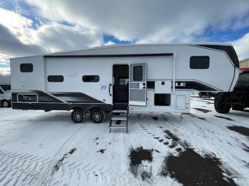 With any Eagle SLE fifth wheel by Jayco, you will enjoy a lighter tow weight, high-end finishes, and the same quality construction you've come to expect from Jayco! There is an Alpha Ply TPO roof membrane, a fully enclosed and heated underbelly, plus Stronghold VBL walls for added durability. There is also a rear 2" towing receiver outside, along with metal slam latch baggage doors, MORryde Step Above entry steps, and a Winegard Air 360 antenna with router prep if you want to stay connected as you camp. Once inside you'll enjoy the handcrafted and glazed door/drawer fronts, blackout pleated shades throughout, and residential vinyl flooring throughout with no carpet for an easier clean. The on-demand water heater, 30K BTU furnace, and 15K BTU "Whisper Quiet" A/C will ensure your comfort year around, and the optional Overland 1 Solar Package can be added if you need off-grid capabilities!