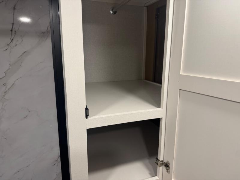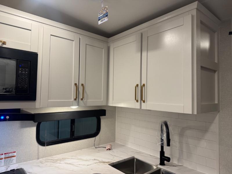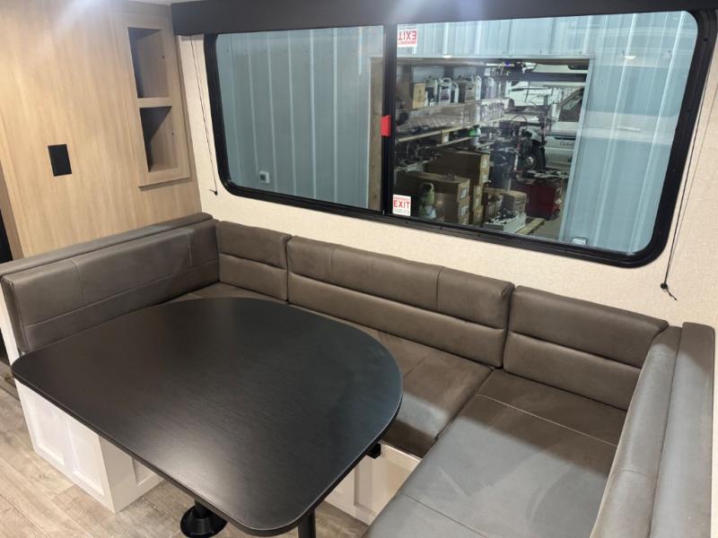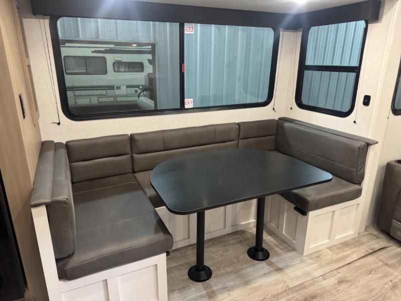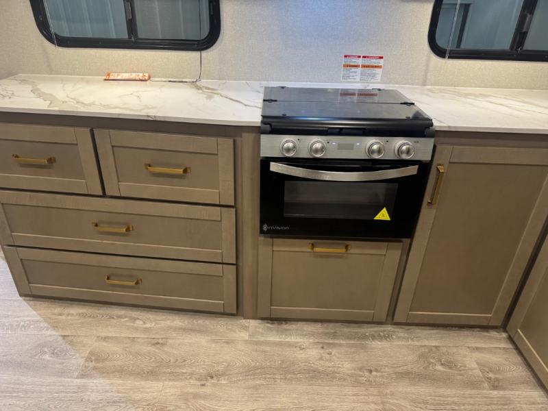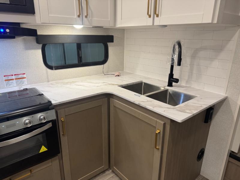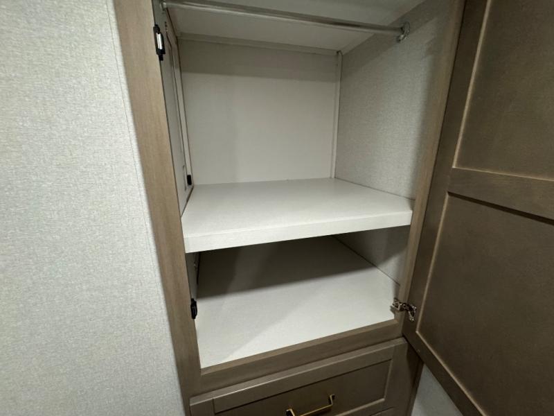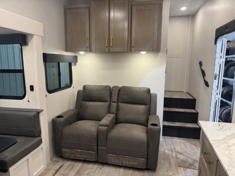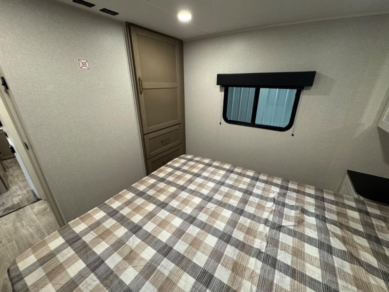 With any Eagle SLE fifth wheel by Jayco, you will enjoy a lighter tow weight, high-end finishes, and the same quality construction you've come to expect from Jayco! There is an Alpha Ply TPO roof membrane, a fully enclosed and heated underbelly, plus Stronghold VBL walls for added durability. There is also a rear 2" towing receiver outside, along with metal slam latch baggage doors, MORryde Step Above entry steps, and a Winegard Air 360 antenna with router prep if you want to stay connected as you camp. Once inside you'll enjoy the handcrafted door/drawer fronts, shower skylight, and residential vinyl flooring throughout with no carpet for an easier clean. The on-demand water heater, 30K BTU furnace, and 15K BTU "Whisper Quiet" A/C will ensure your comfort, and the Overland 1 Solar Package will provide off-grid capabilities!