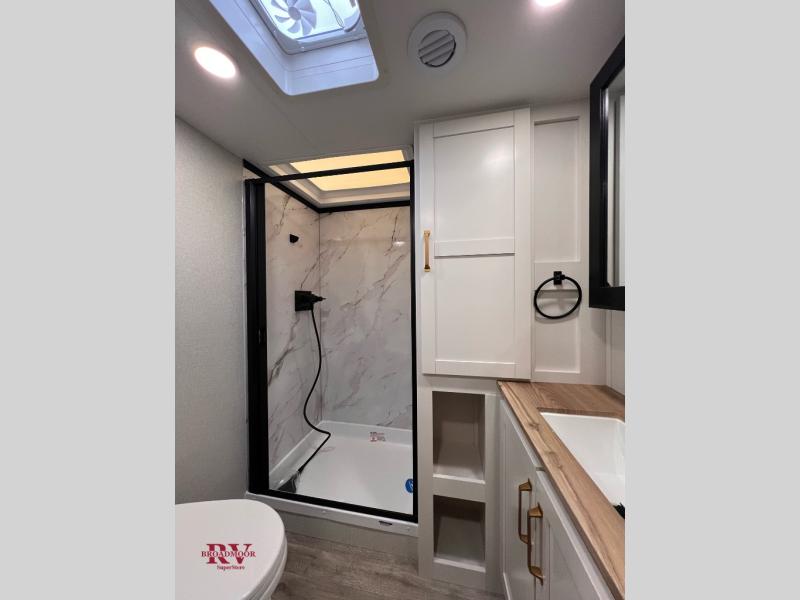 With any Eagle SLE fifth wheel by Jayco, you will enjoy a lighter tow weight, high-end finishes, and the same quality construction you've come to expect from Jayco! There is an Alpha Ply TPO roof membrane, a fully enclosed and heated underbelly, plus Stronghold VBL walls for added durability. There is also a rear 2" towing receiver outside, along with metal slam latch baggage doors, MORryde Step Above entry steps, and a Winegard Air 360 antenna with router prep if you want to stay connected as you camp. Once inside you'll enjoy the handcrafted door/drawer fronts, shower skylight, and residential vinyl flooring throughout with no carpet for an easier clean. The on-demand water heater, 30K BTU furnace, and 15K BTU "Whisper Quiet" A/C will ensure your comfort, and the Overland 1 Solar Package will provide off-grid capabilities!