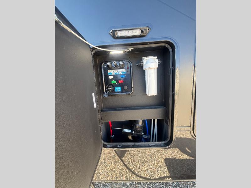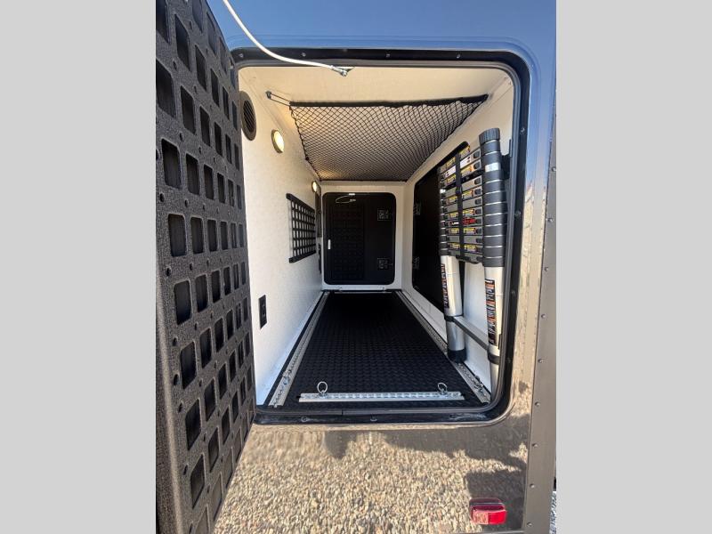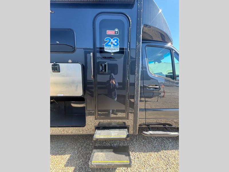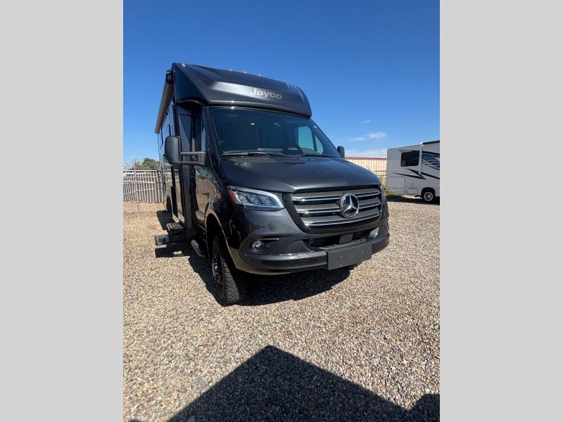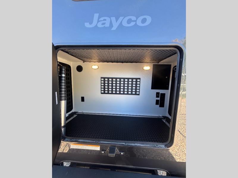 The Granite Ridge Class C diesel motorhome by Jayco is off-road ready and adventure ready! A 9-speed transmission comes standard, along with the JRide handling system, and a premium Mercedes-Benz 3500 AWD chassis that will help you conquer tougher roads. There are also all-terrain tires, an integrated Mercedes-Benz MBUX infotainment center, and added safety features for your peace of mind. The heated garage with two 120V charging ports and Molle panels will be perfect for your outdoor gear, and the outside shower will let you wash off your kayak or fishing gear. This camper van includes pressed countertops inside, along with residential vinyl flooring, high-intensity LED ceiling lights, and a soft-touch vinyl ceiling!