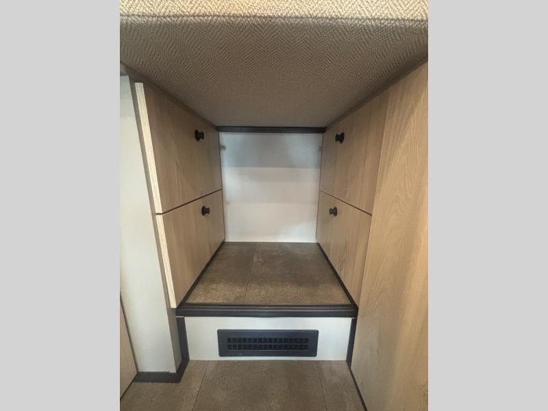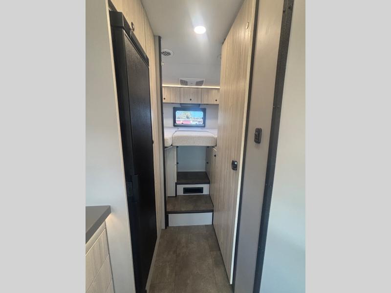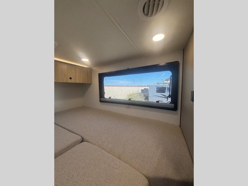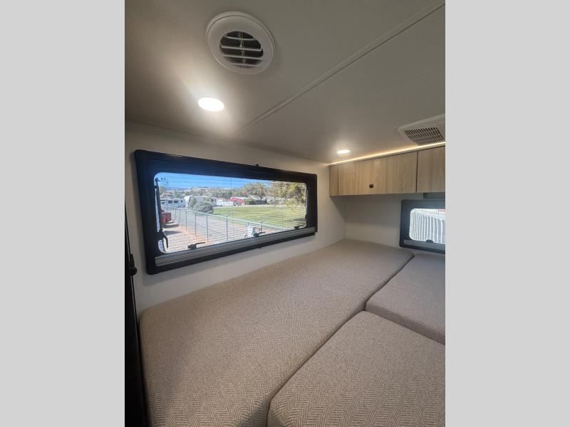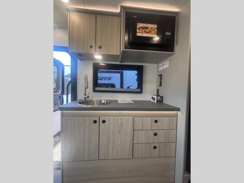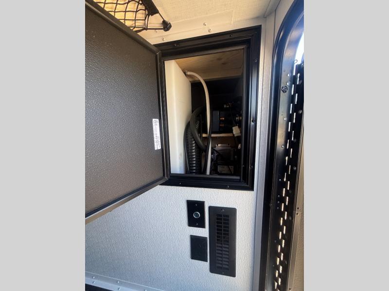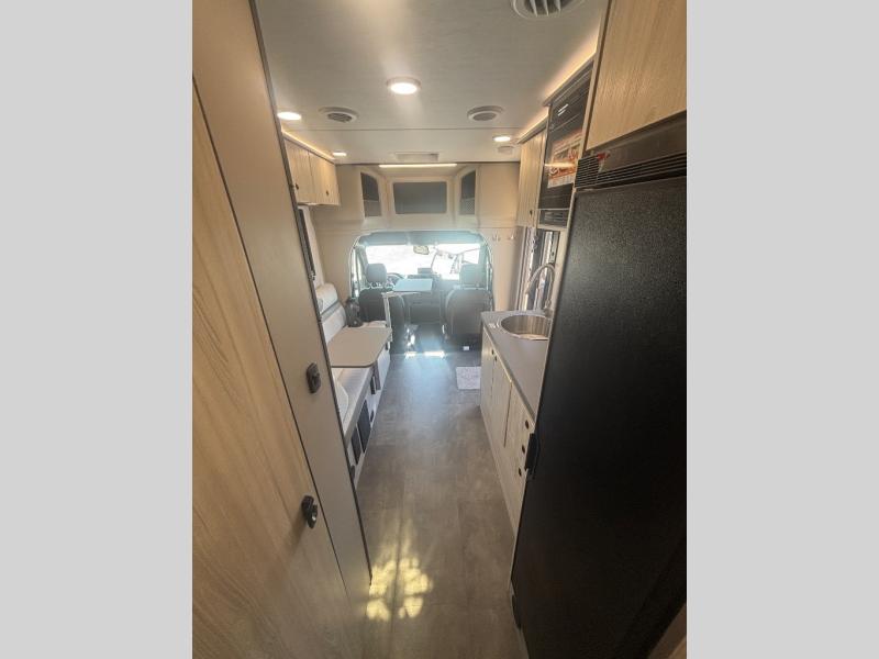 Whether you're roughing it in the mountains or relaxing in the woods, this coach is sure to meet all your needs. The swivel seats can turn around once you're parked to become a part of the living space, and you'll also find a 68" bench with removable tables here where you can enjoy your coffee at each morning. There is an induction cooktop and a convection microwave to prepare dinner, a 5.3 cu. ft. 12V refrigerator to store cold items, and even a pantry for snacks! This van is perfect for couples or friends since there are twin beds with a king bed conversion so you can choose two beds or one big bed, and the optional pop-top can be added if you're needing additional sleeping space!