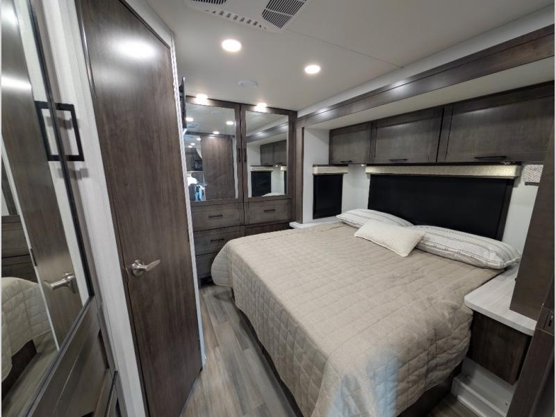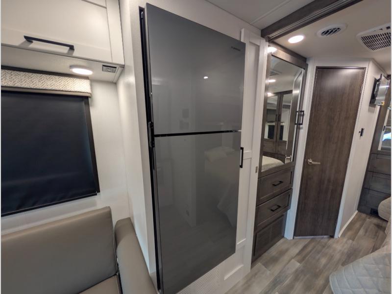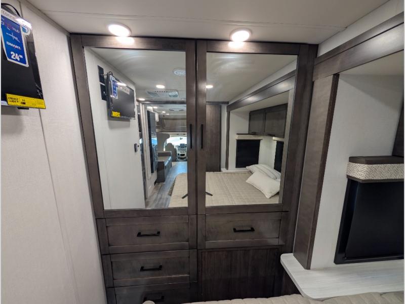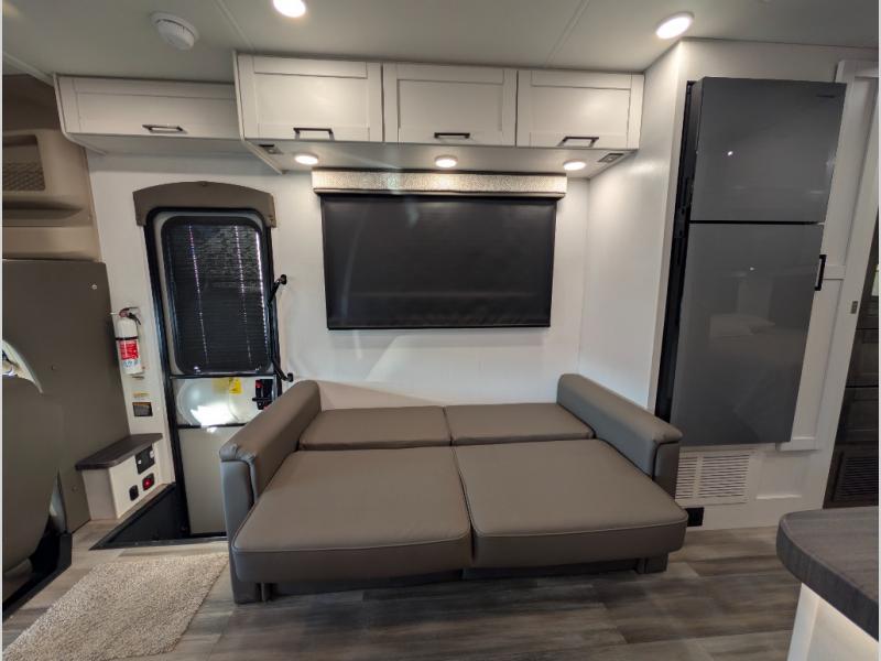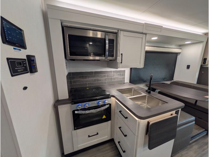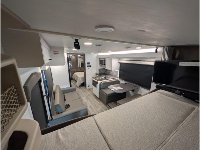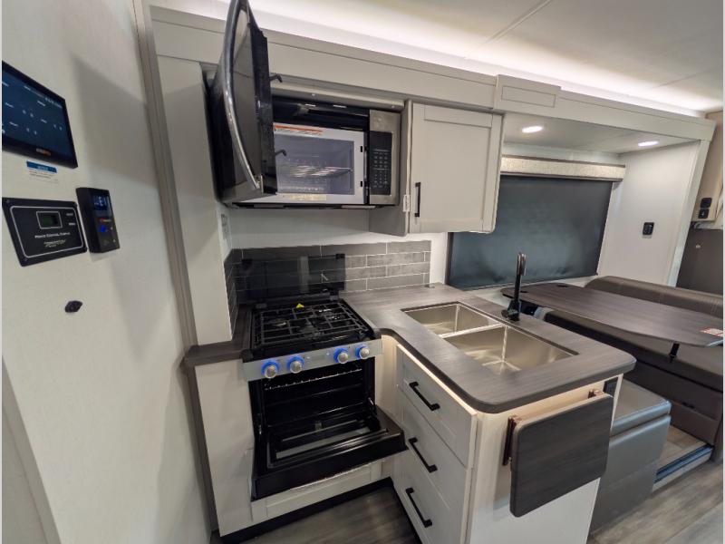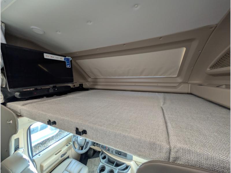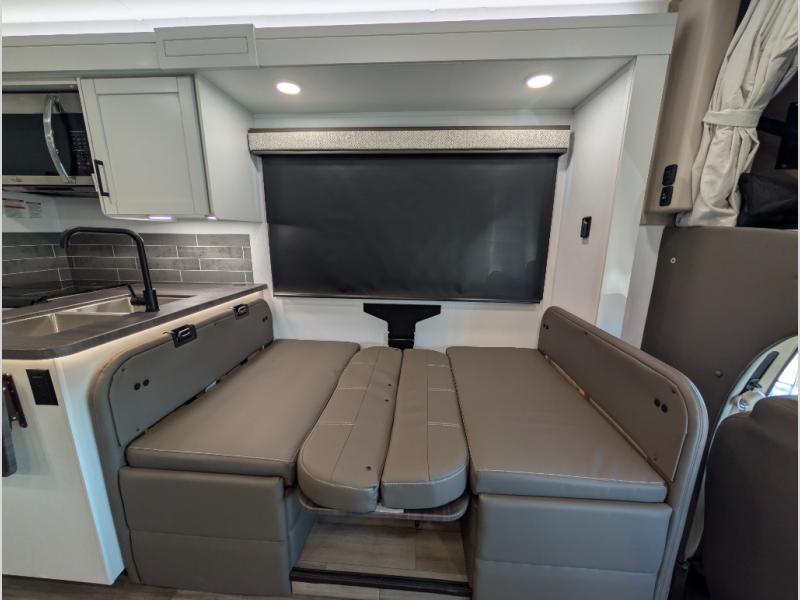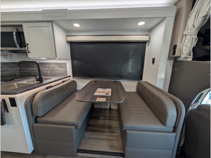 Trips across state lines just got sweeter in this motorhome for five to six. The swivel captain's seats can become a part of the living area once you park, and your guests can get comfortable on the 42" x 70" booth dinette or 68" jackknife sofa. There is a cab-over bunk the kids will love, and the LED HD Smart TV will allow you to enjoy movies. The chef of your group can prepare meals on the Furrion all-in-one cooktop and oven, and leftovers can go in the 10 cu. ft. 12V refrigerator. You will feel right at home in the bedroom suite with its king bed slide out, large wardrobe, and access to the rear corner bathroom. Get started on your getaway today in this cozy Class C motorhome!