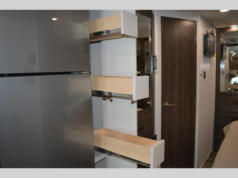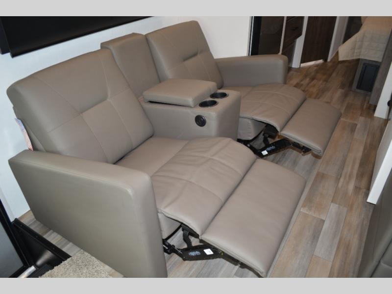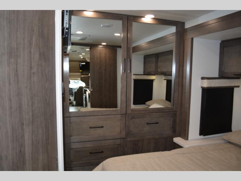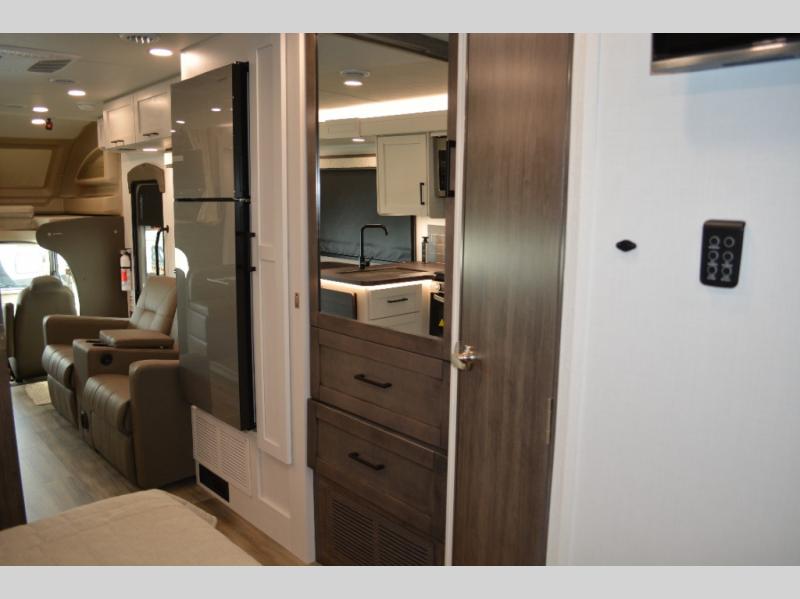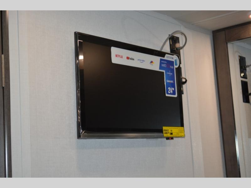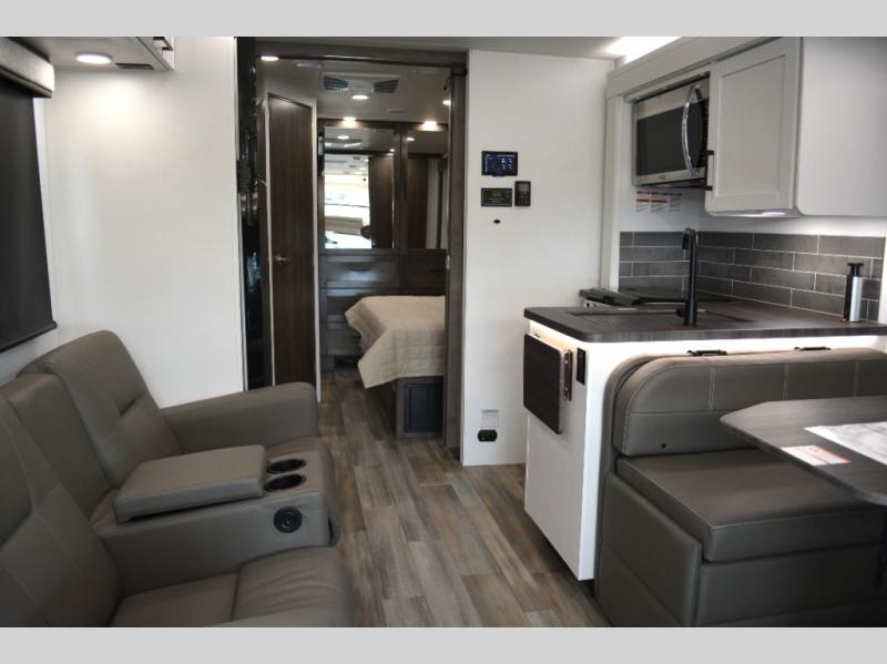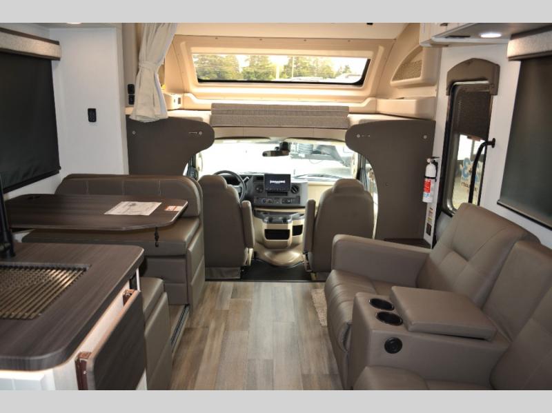 Trips across state lines just got sweeter in this motorhome for five to six. The swivel captain's seats can become a part of the living area once you park, and your guests can get comfortable on the 42" x 70" booth dinette or 68" jackknife sofa. There is a cab-over bunk the kids will love, and the LED HD Smart TV will allow you to enjoy movies. The chef of your group can prepare meals on the Furrion all-in-one cooktop and oven, and leftovers can go in the 10 cu. ft. 12V refrigerator. You will feel right at home in the bedroom suite with its king bed slide out, large wardrobe, and access to the rear corner bathroom. Get started on your getaway today in this cozy Class C motorhome!