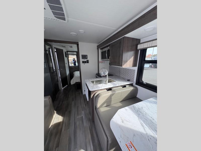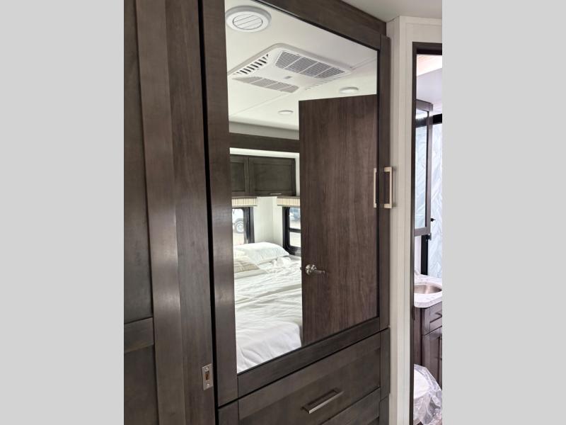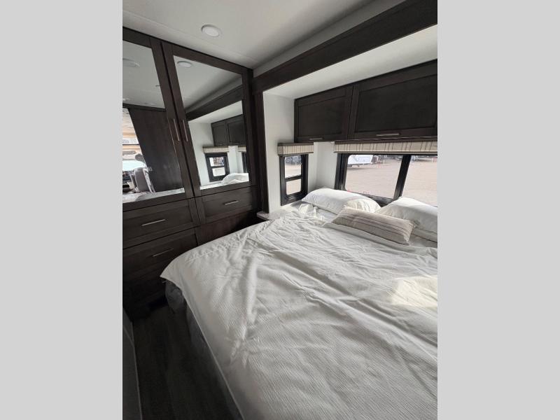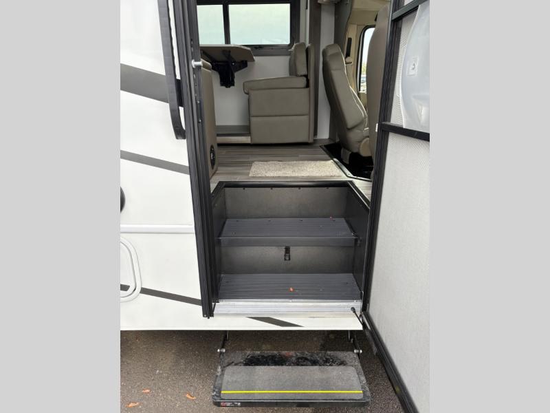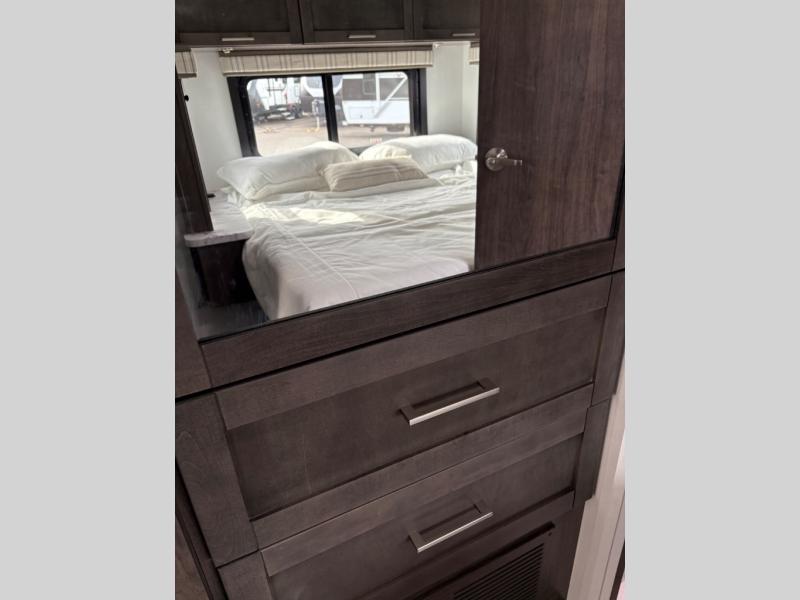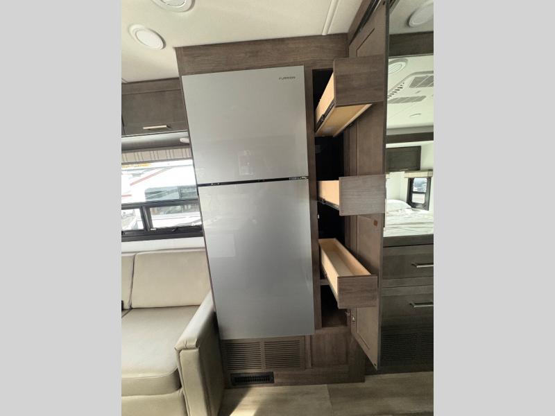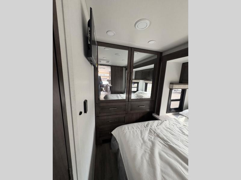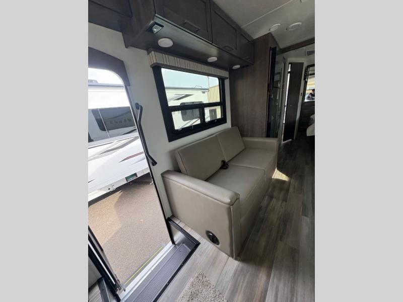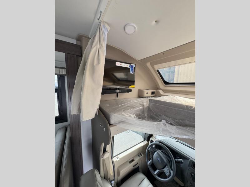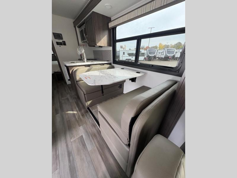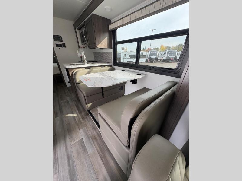 Trips across state lines just got sweeter in this motorhome for five to six. The swivel captain's seats can become a part of the living area once you park, and your guests can get comfortable on the 42" x 70" booth dinette or 68" jackknife sofa. There is a cab-over bunk the kids will love, and the LED HD Smart TV will allow you to enjoy movies. The chef of your group can prepare meals on the Furrion all-in-one cooktop and oven, and leftovers can go in the 10 cu. ft. 12V refrigerator. You will feel right at home in the bedroom suite with its king bed slide out, large wardrobe, and access to the rear corner bathroom. Get started on your getaway today in this cozy Class C motorhome!